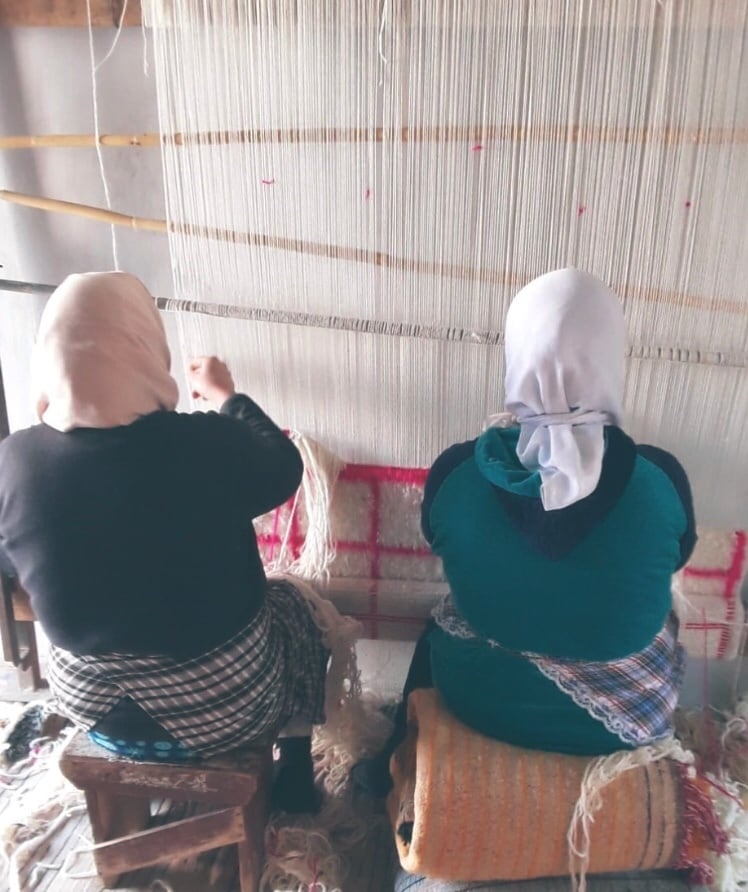 手仕事にて、ひとつひとつ丁寧に織られる