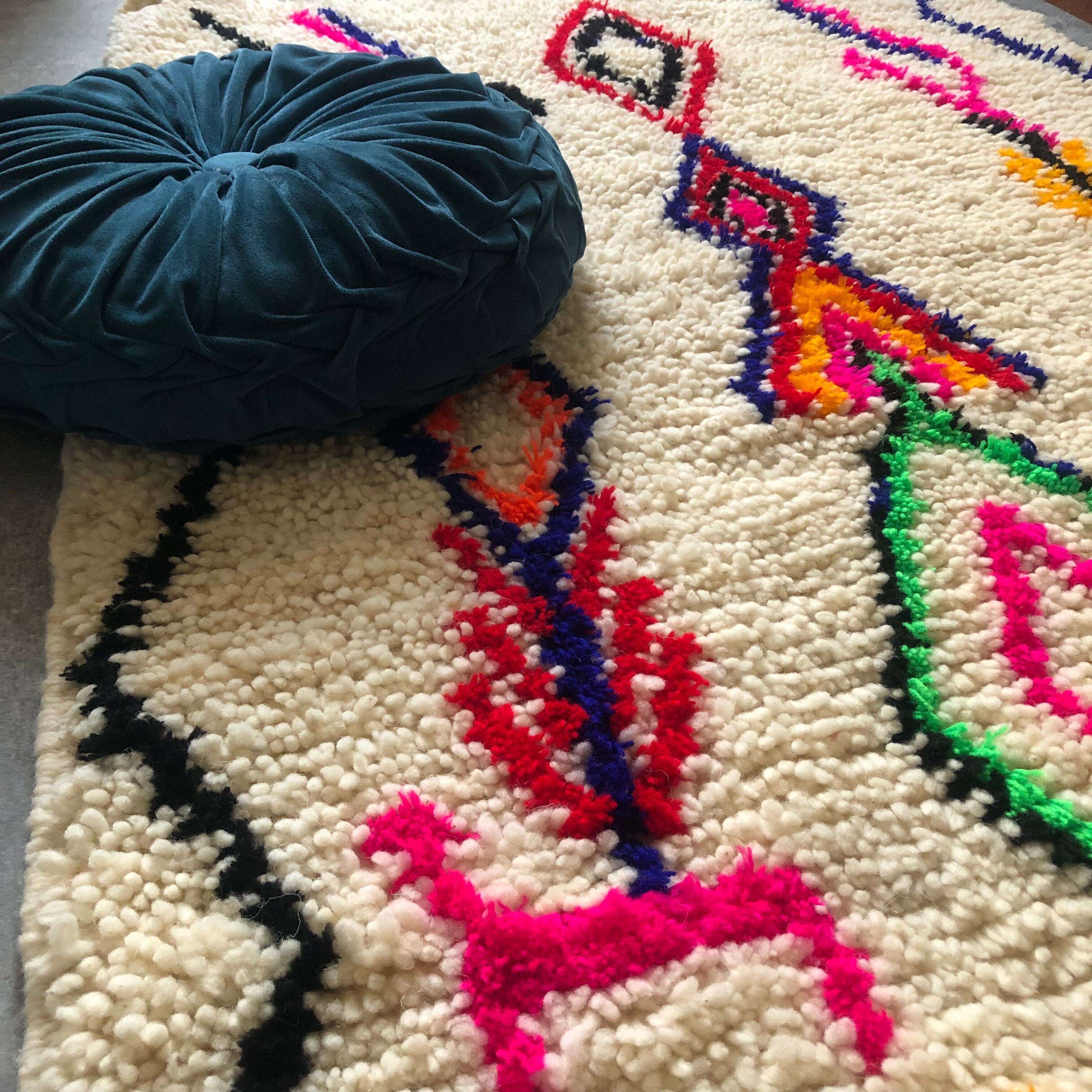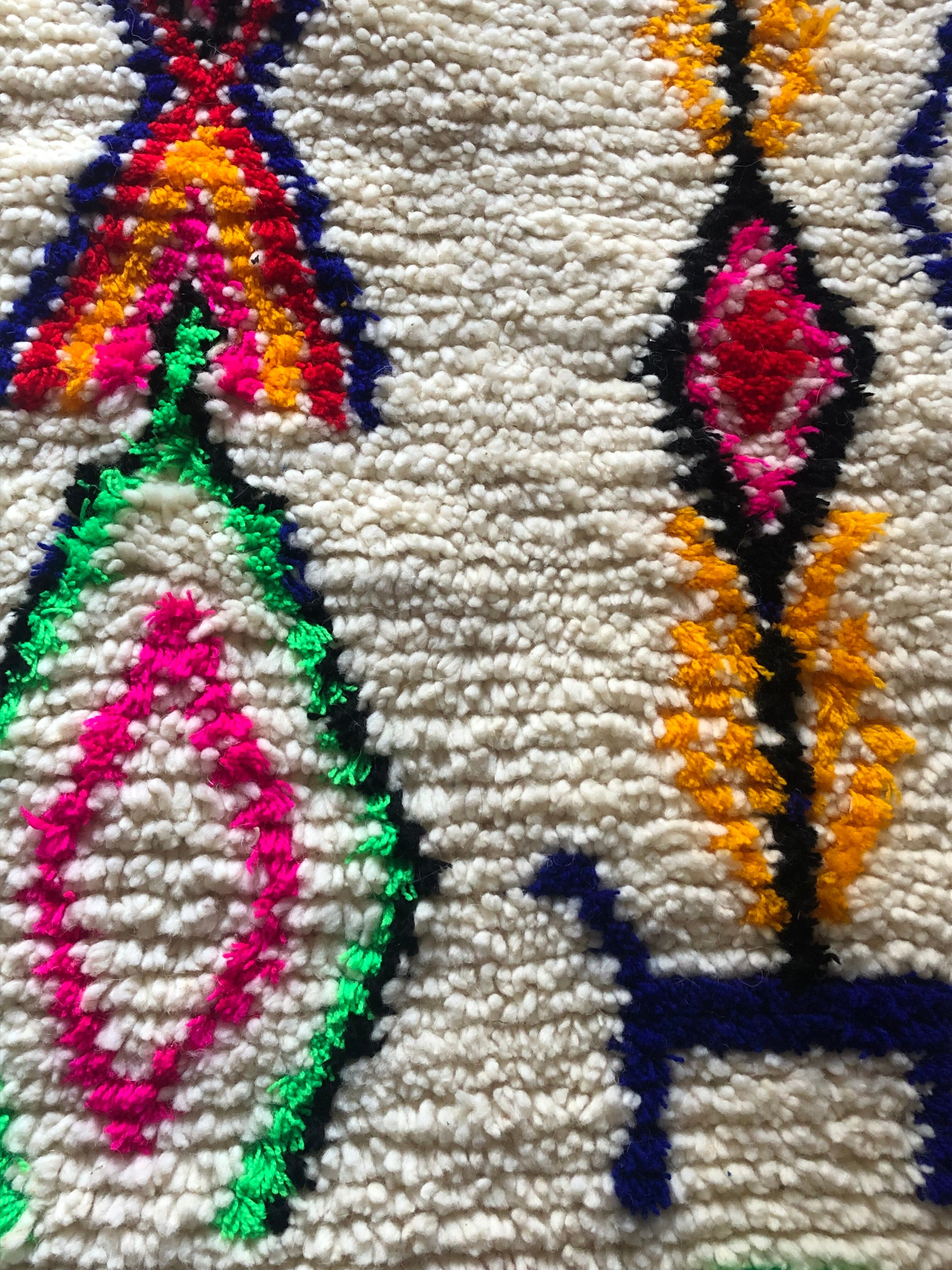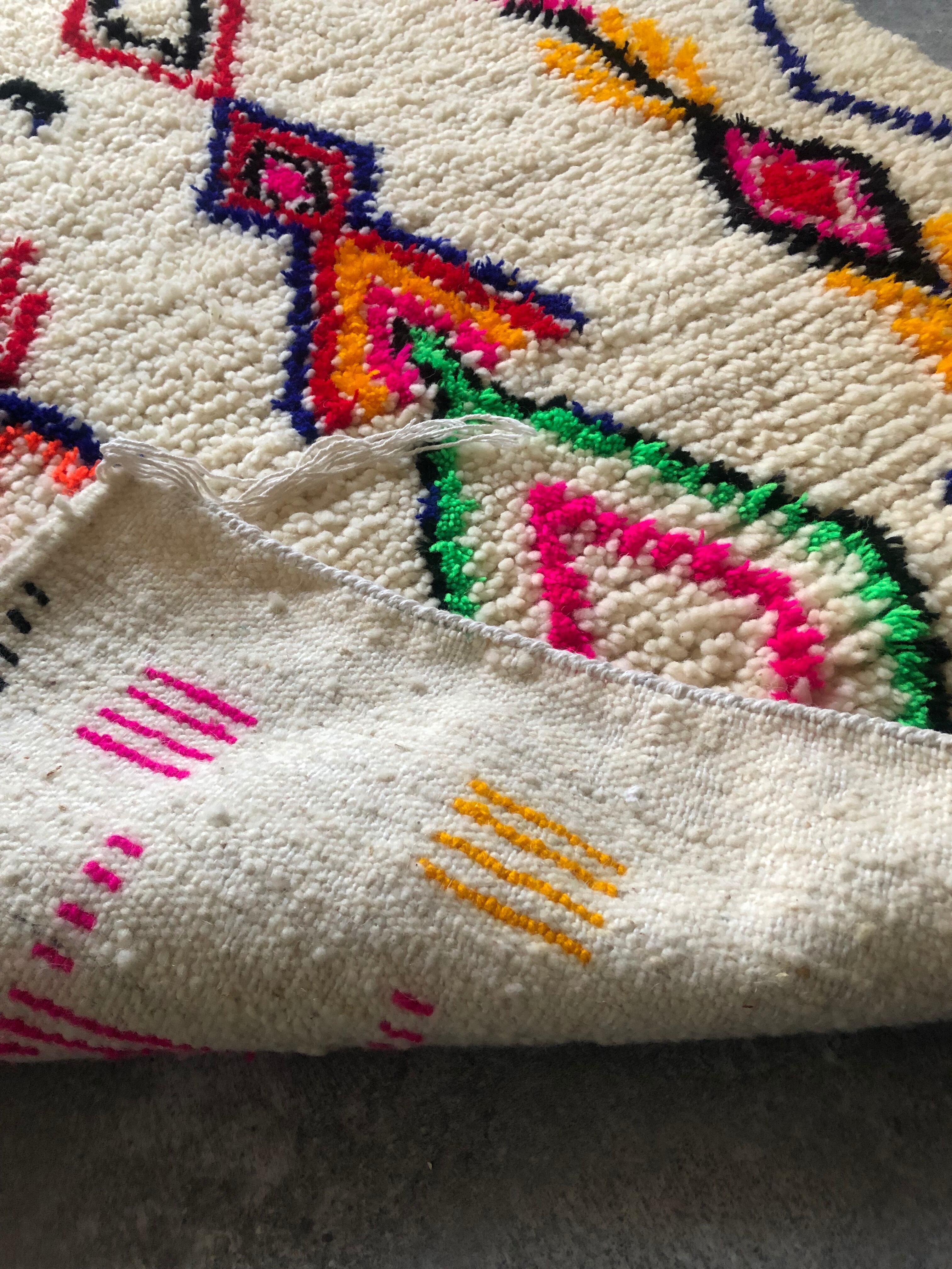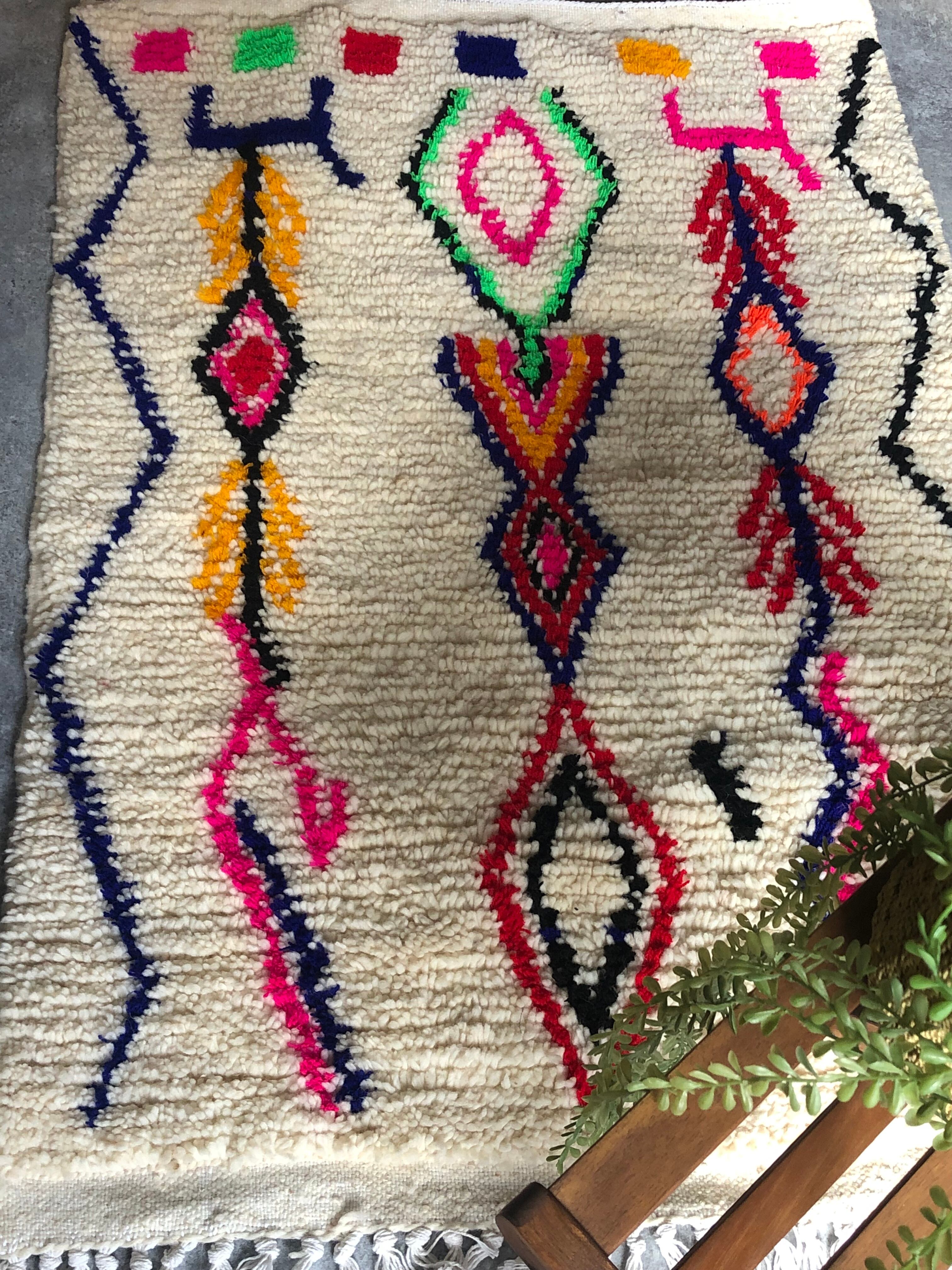 モロッコ中部のアジラル地方で、長い歴史をもつ種族ベルベル人女性によって、ひとつひとつ丁寧に、手織りで織られる「アジラルラグ」。