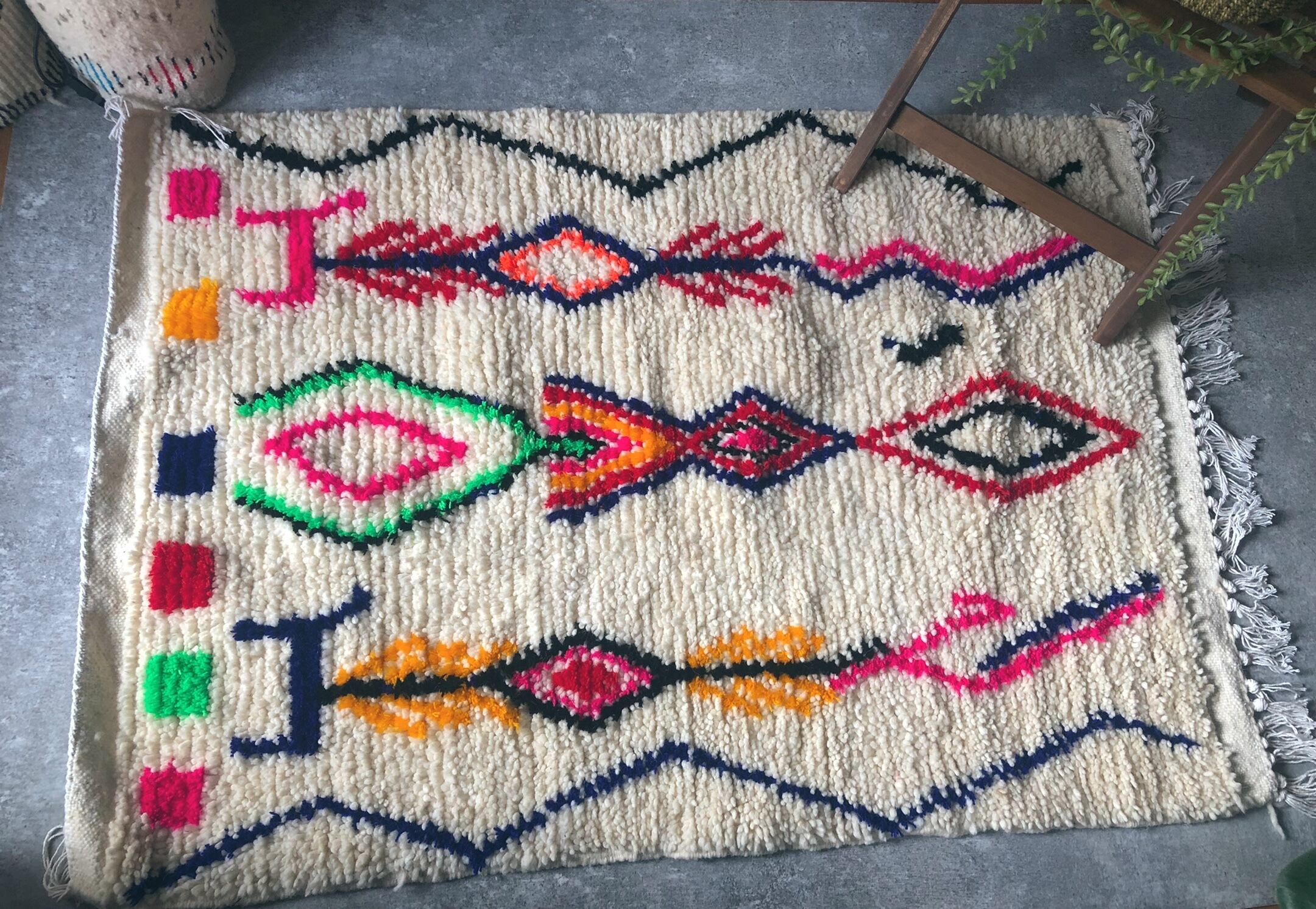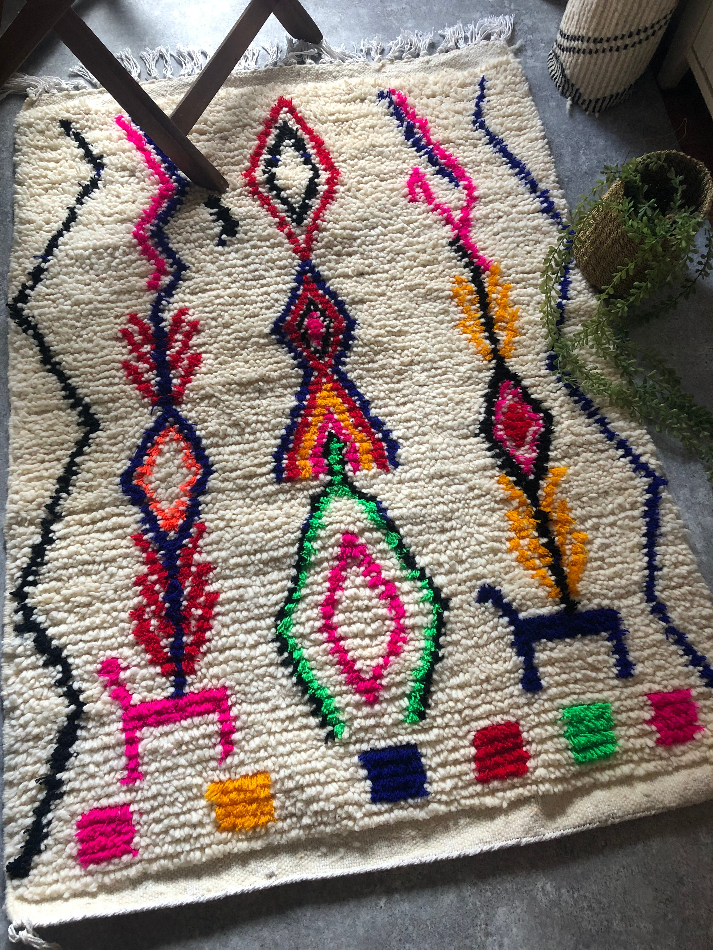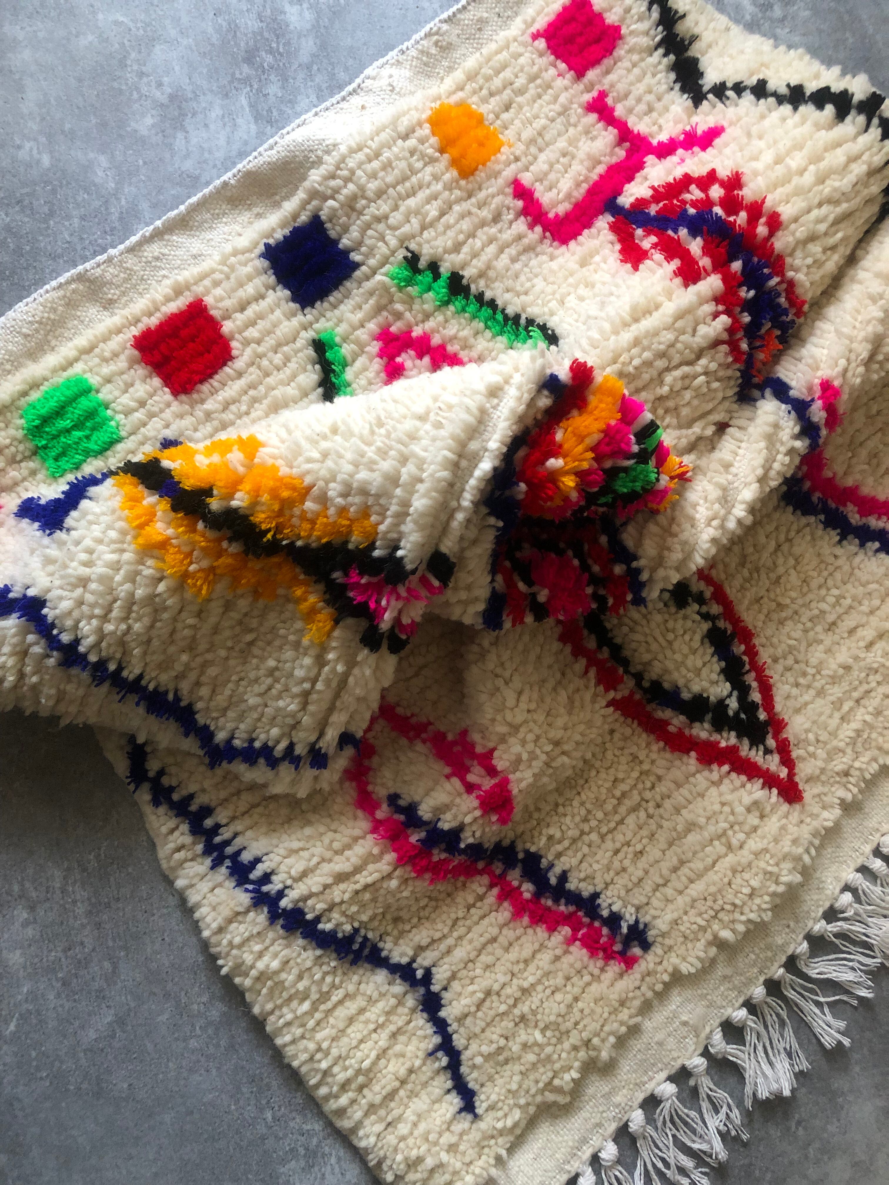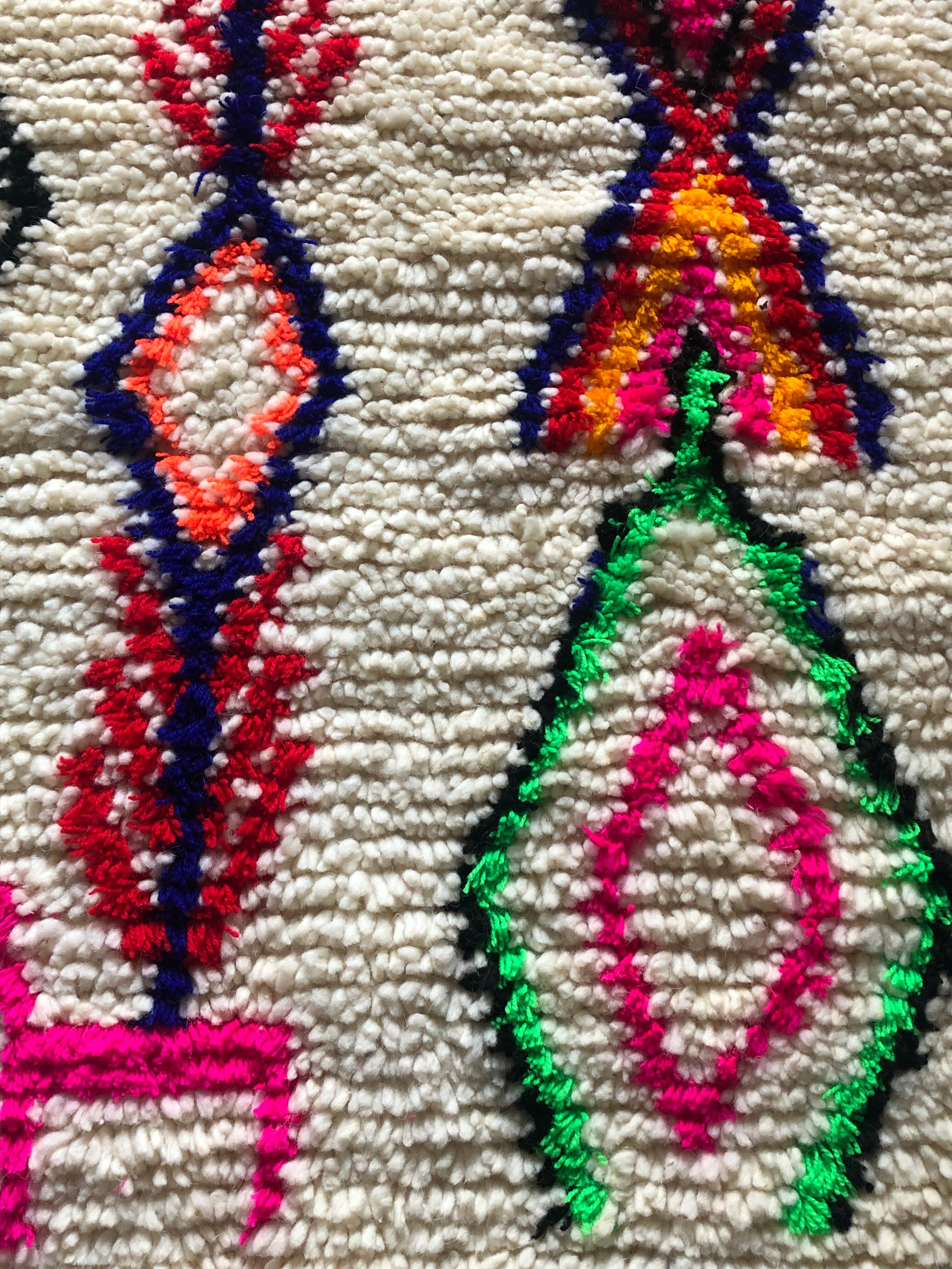 モロッコ中部のアジラル地方で、長い歴史をもつ種族ベルベル人女性によって、ひとつひとつ丁寧に、手織りで織られる「アジラルラグ」。