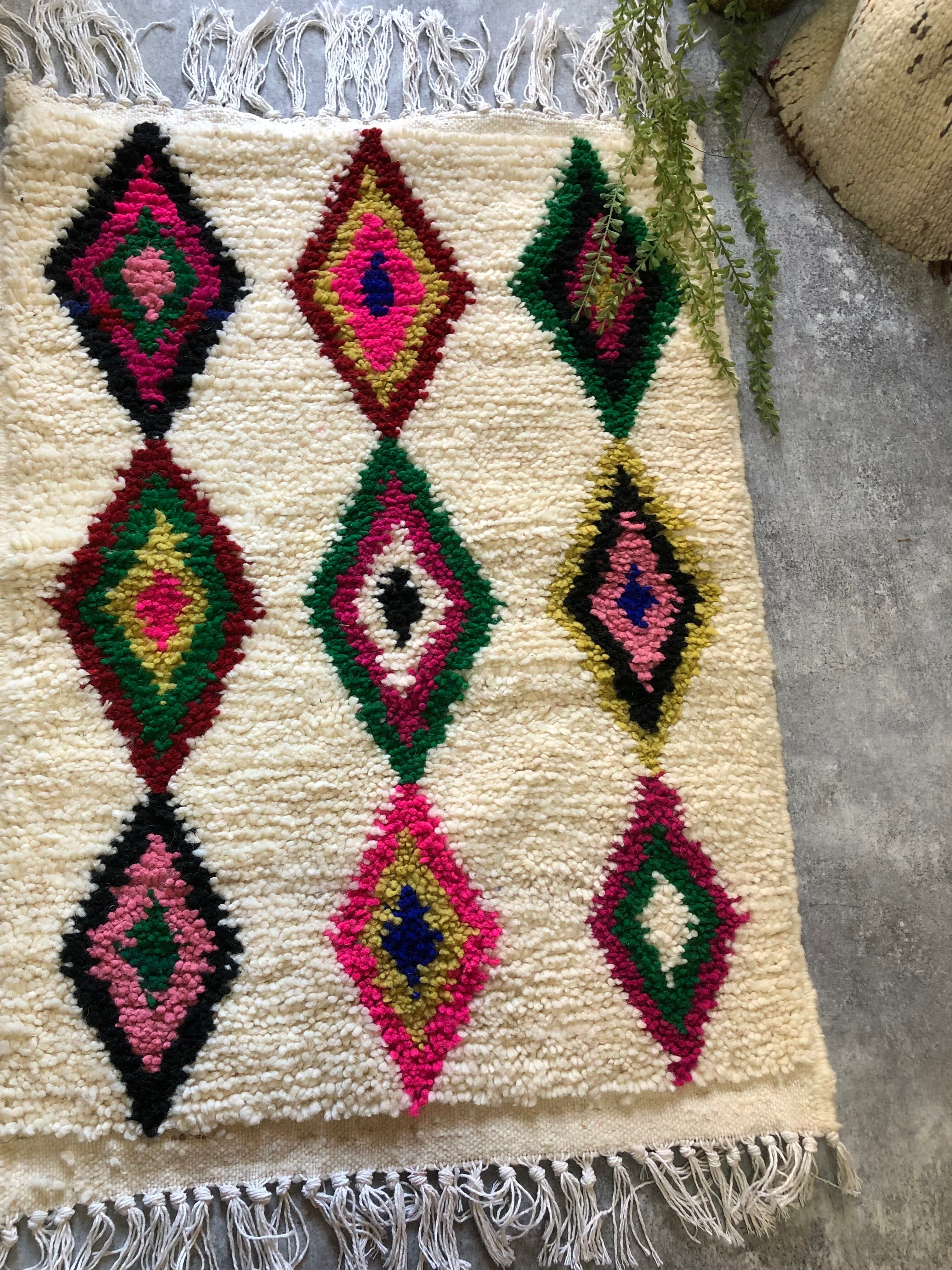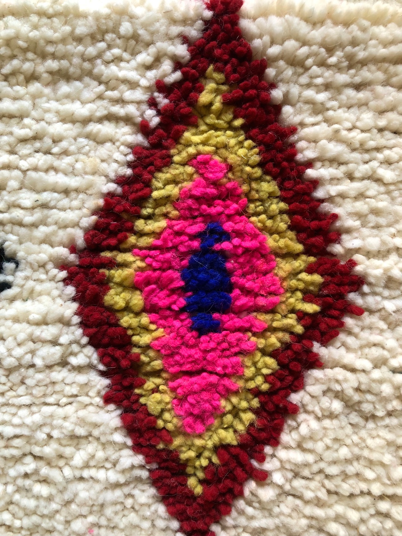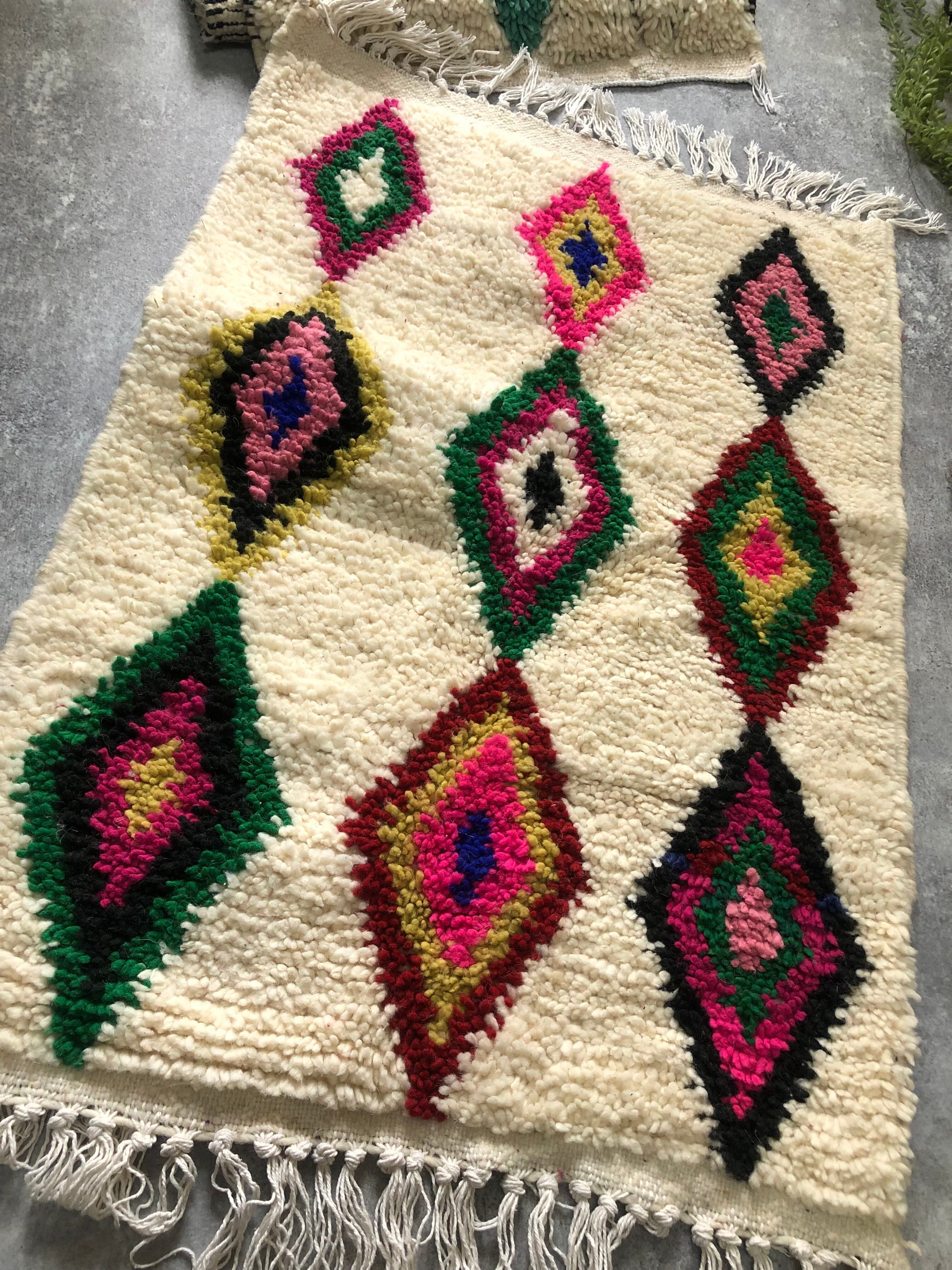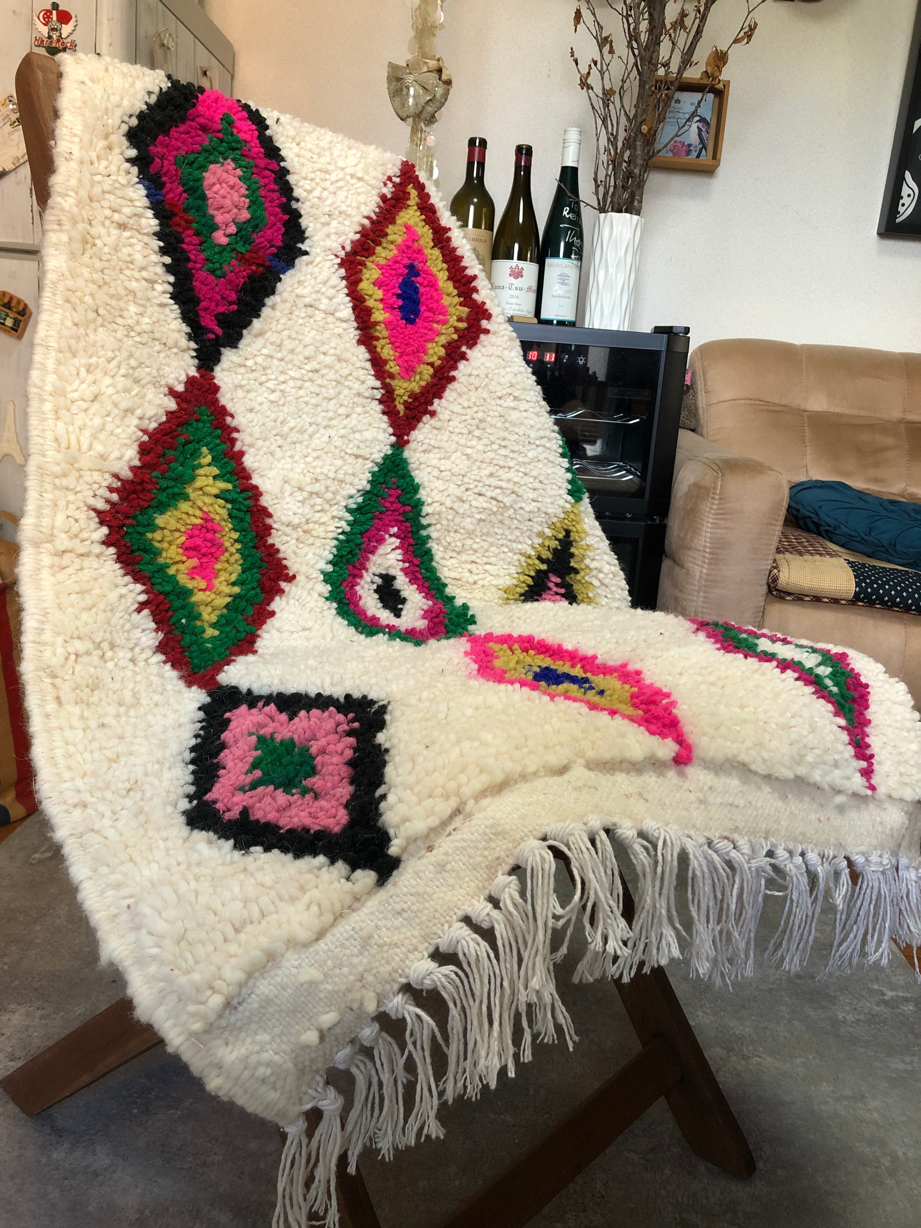 モロッコ中部のアジラル地方で、長い歴史をもつ種族ベルベル人女性によって、ひとつひとつ丁寧に、手織りで織られる「アジラルラグ」。