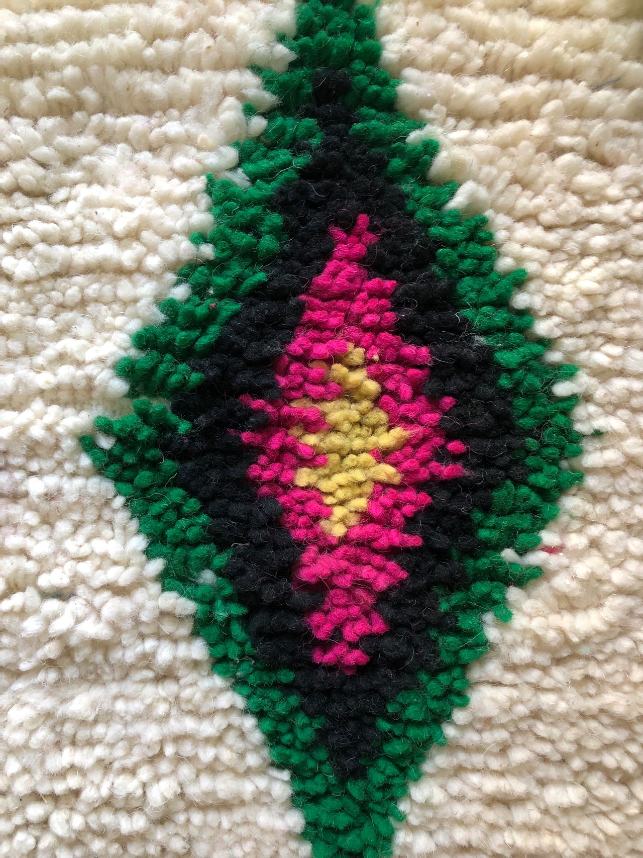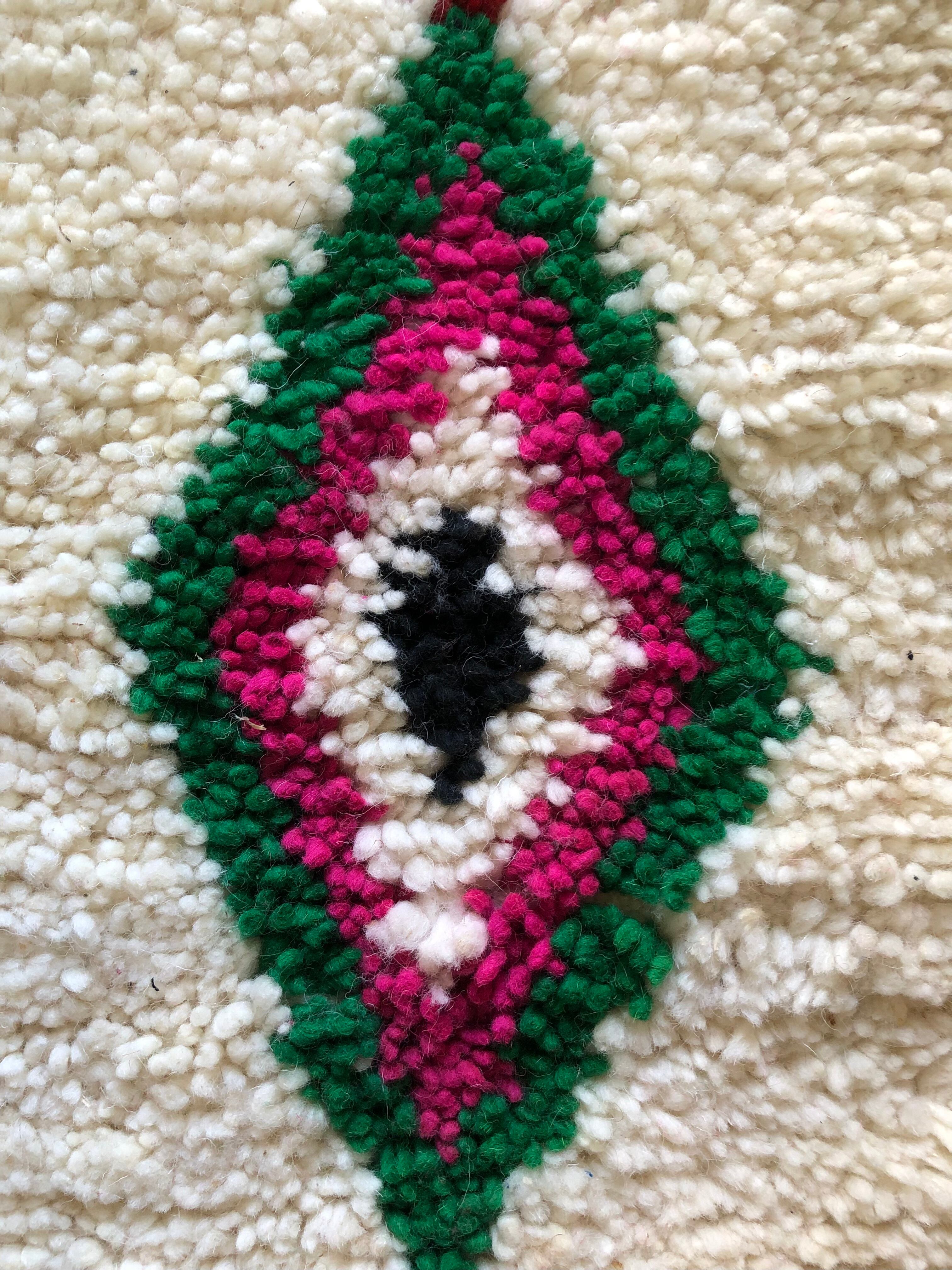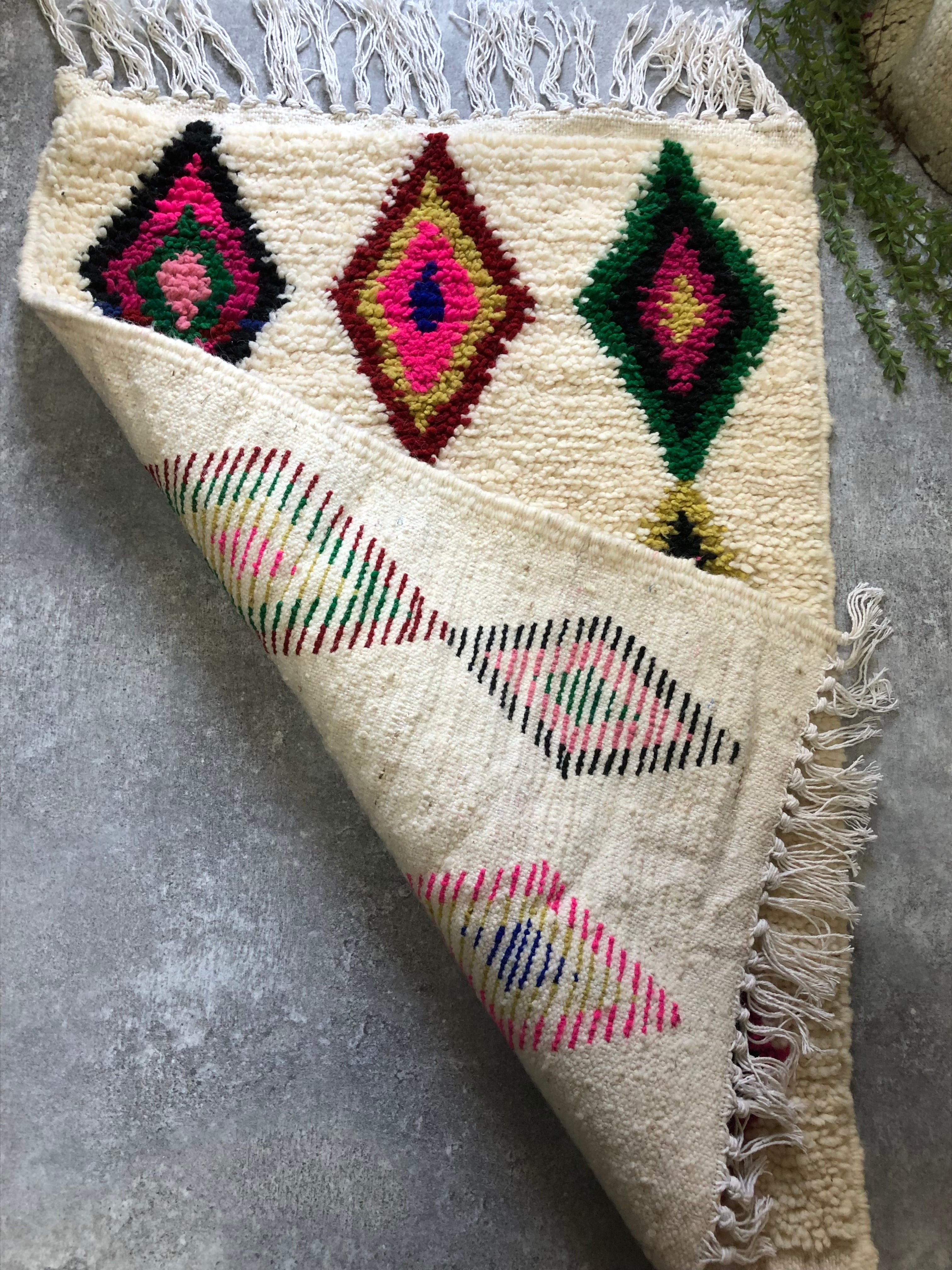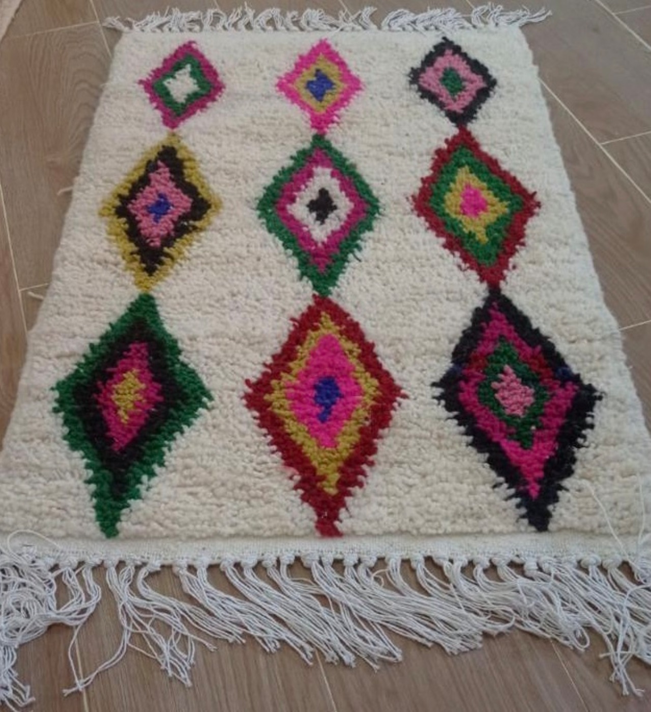 モロッコ中部のアジラル地方で、長い歴史をもつ種族ベルベル人女性によって、ひとつひとつ丁寧に、手織りで織られる「アジラルラグ」。