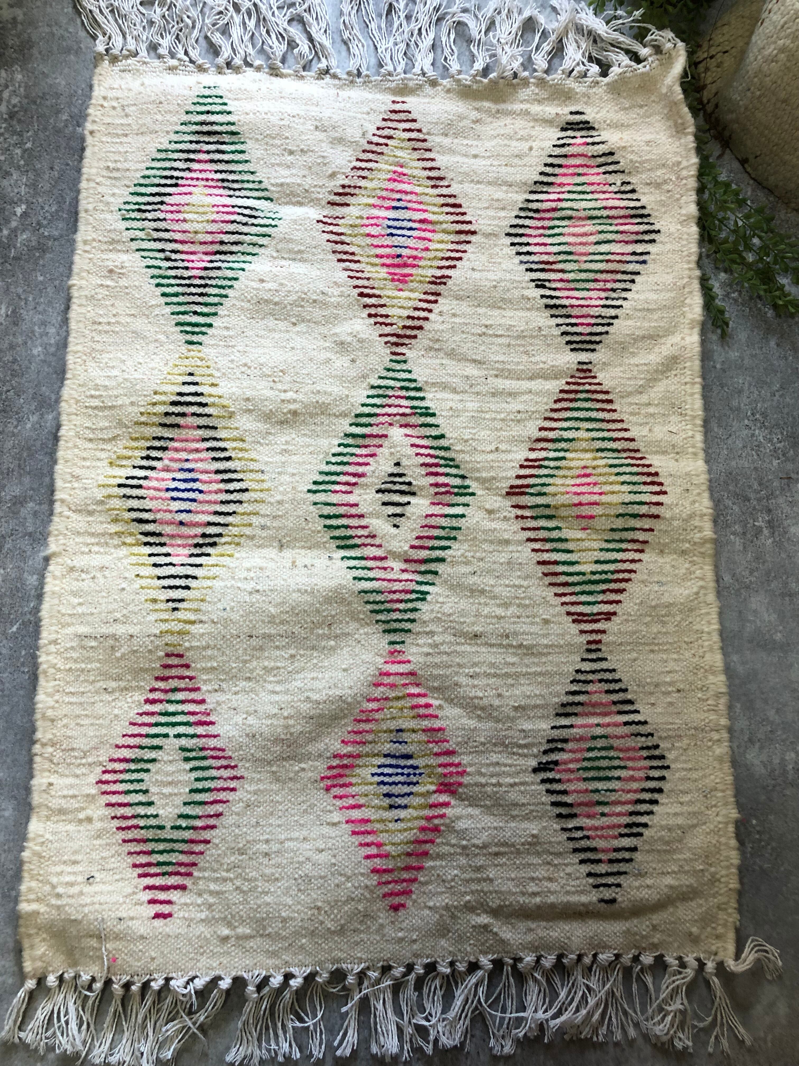 9つのダイヤが、それぞれの色合いで織られた、ほんのりレトロ感を想わす1枚。