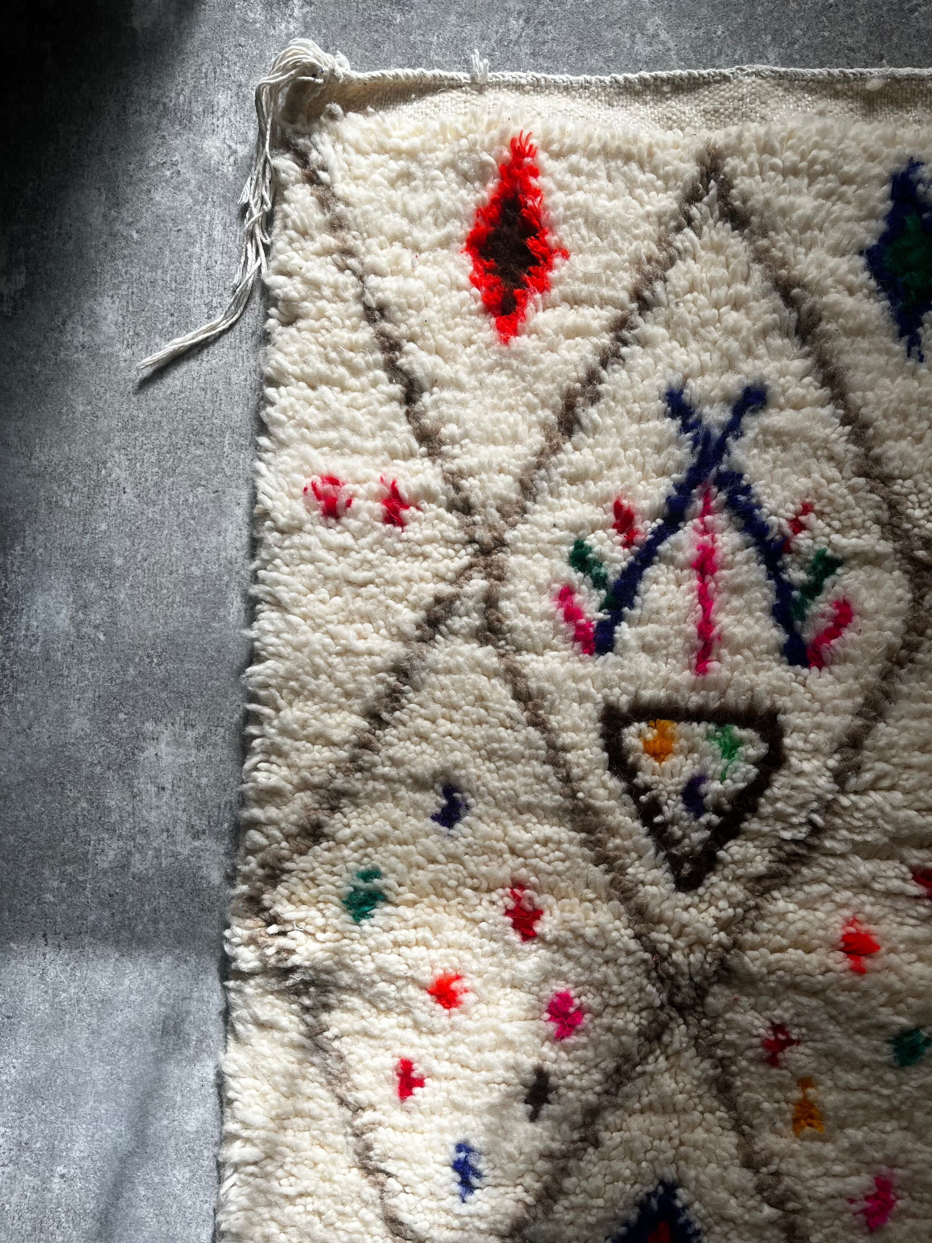 モロッコ中部のアジラル地方で、長い歴史をもつ種族ベルベル人女性によって、ひとつひとつ丁寧に、手織りで織られる「アジラルラグ」。