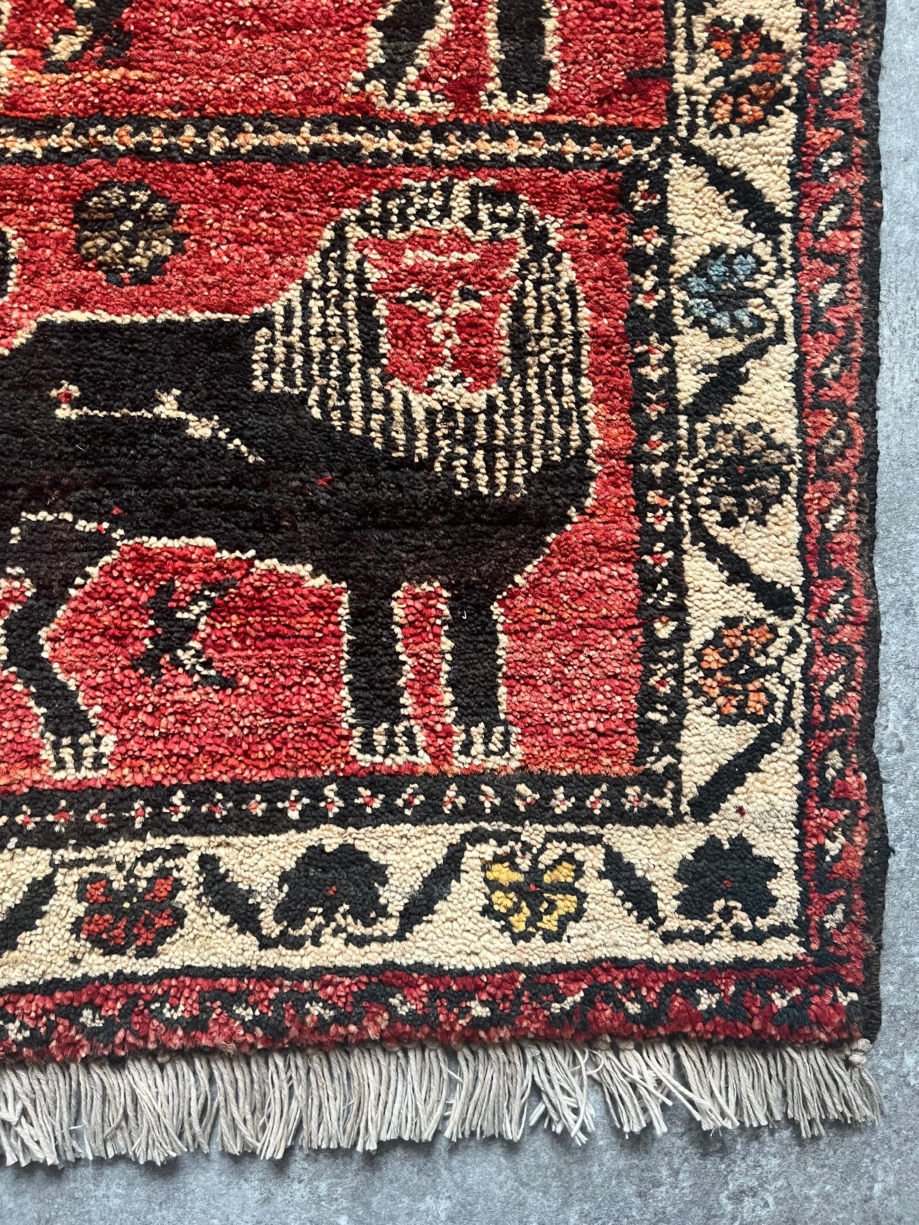 こちらは部族のラグと言われるもので、遊牧民が自分たちの飼っている羊や山羊の毛を紡ぎ、家の中で使う生活のための道具として代々受け継がれてきたものです。