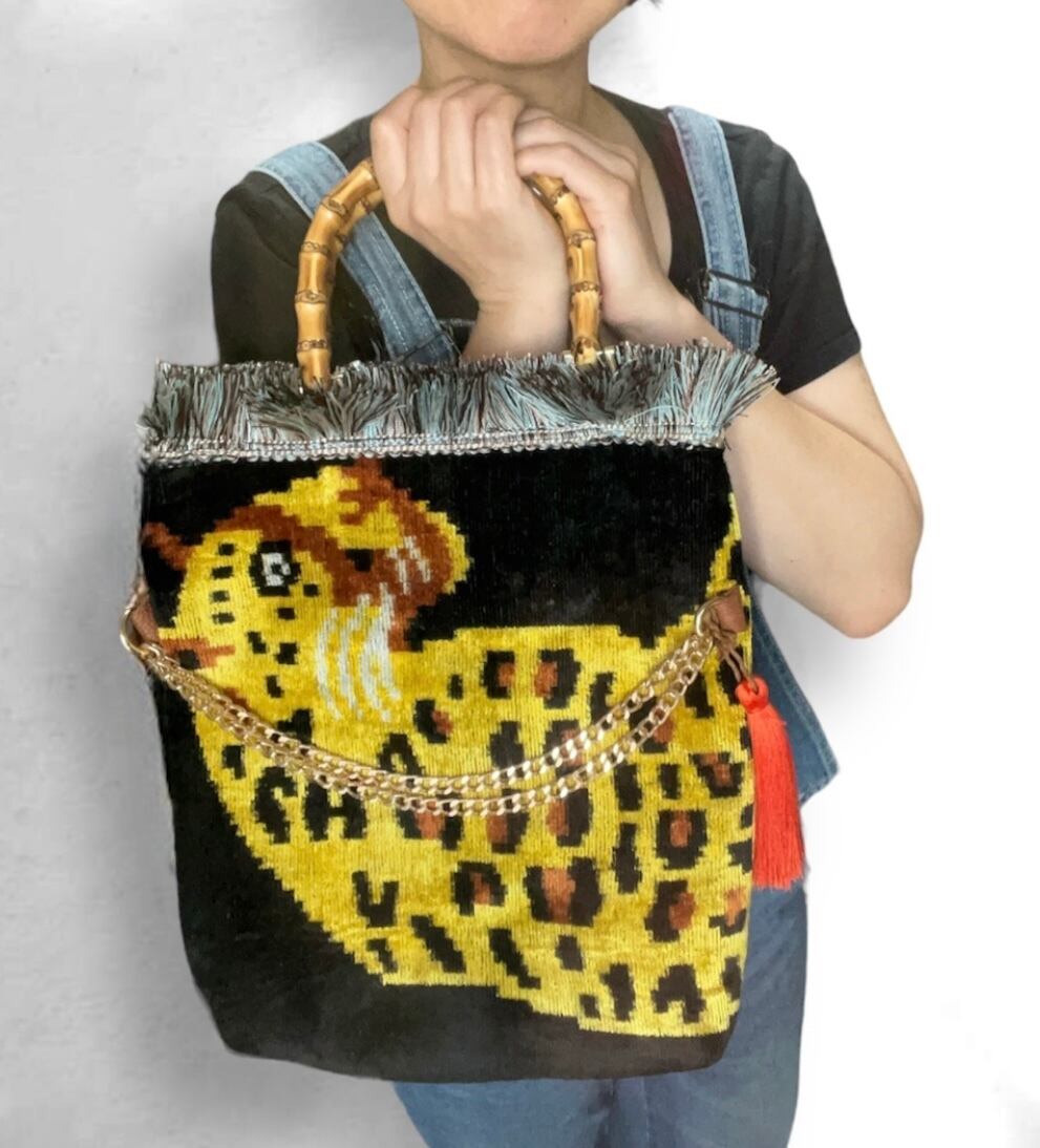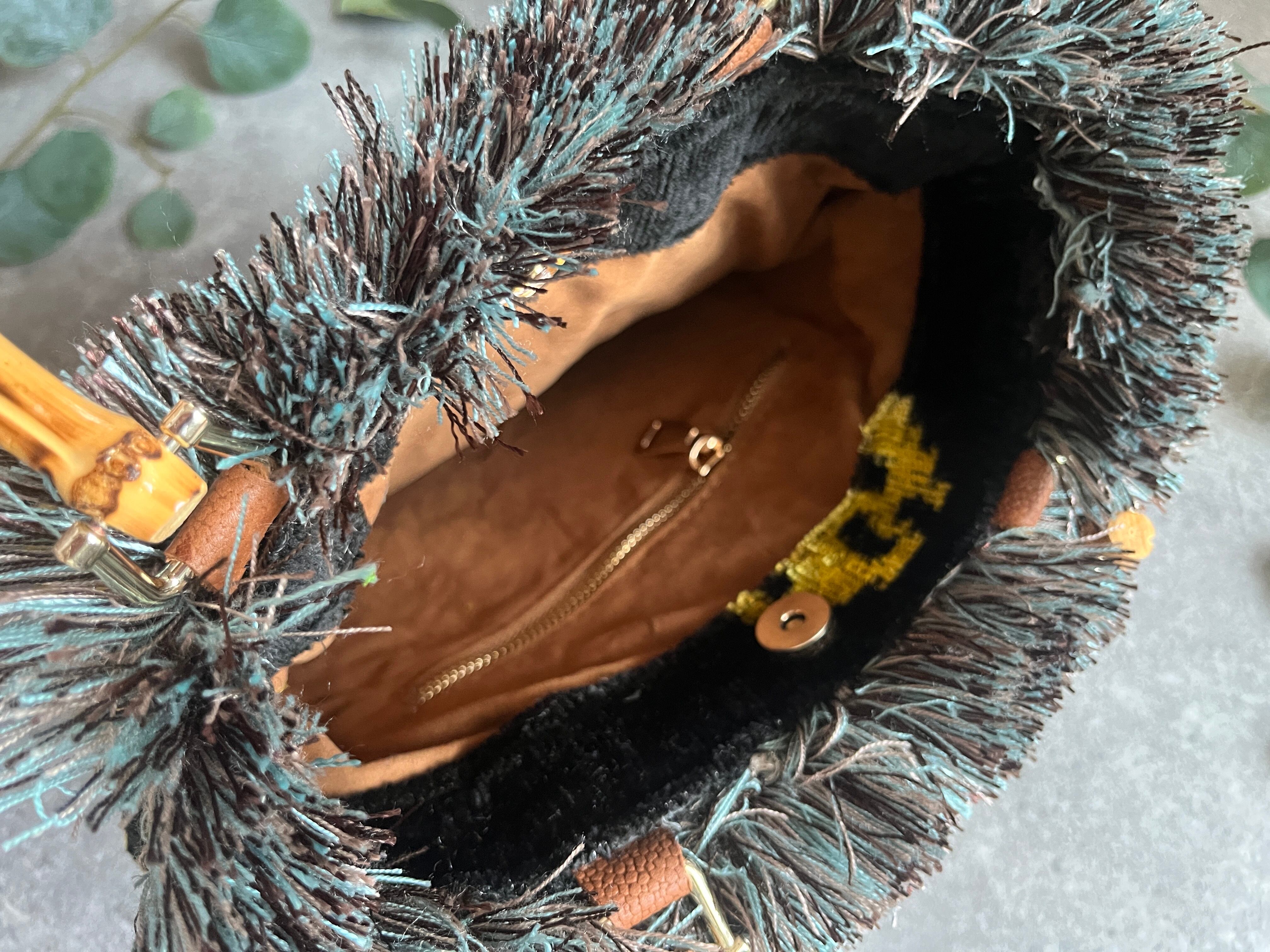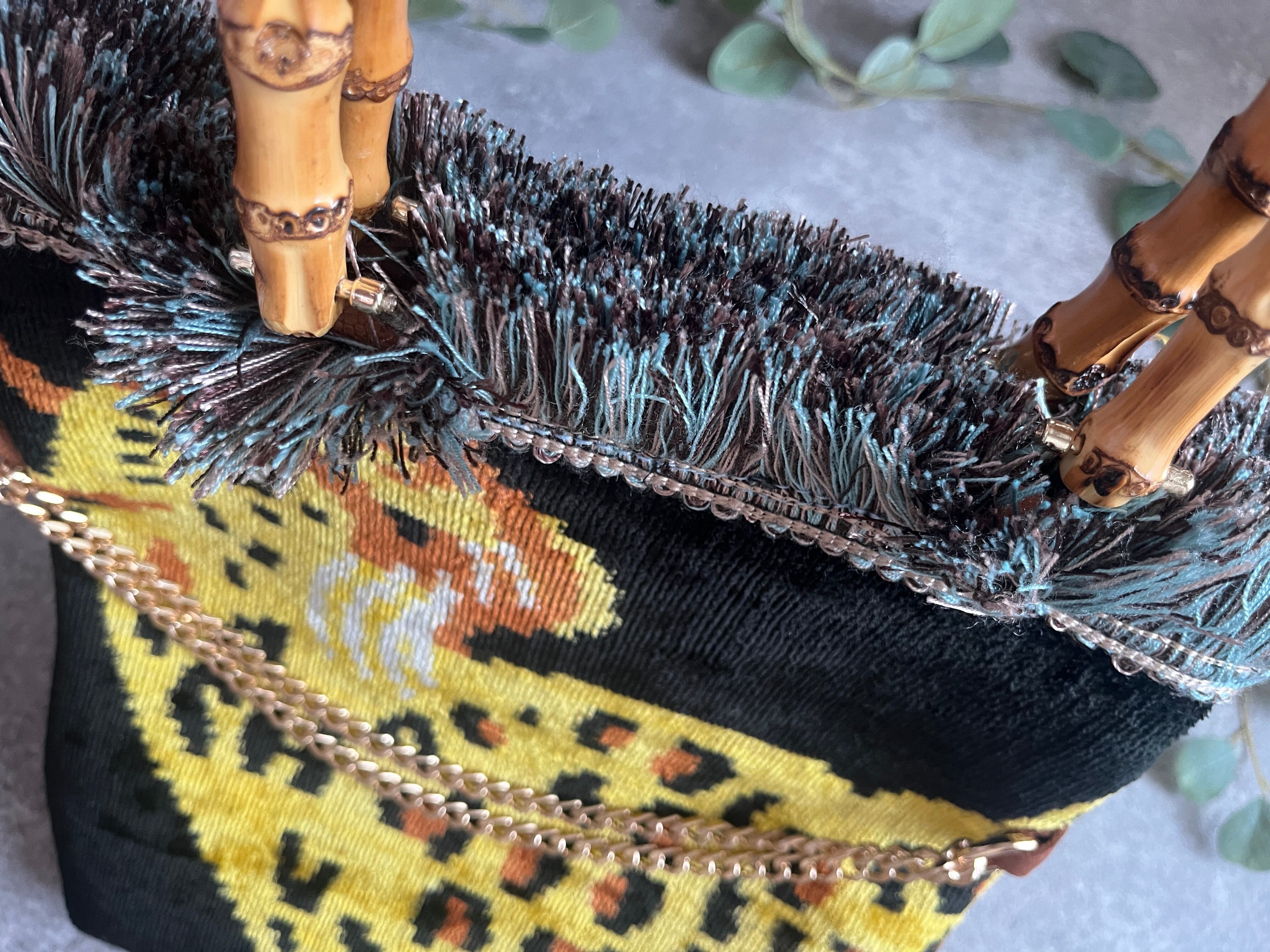 そして上部にあしらわれたフリンジとバンブーハンドルがまた全体のバランスを上品に仕立ててくれています。