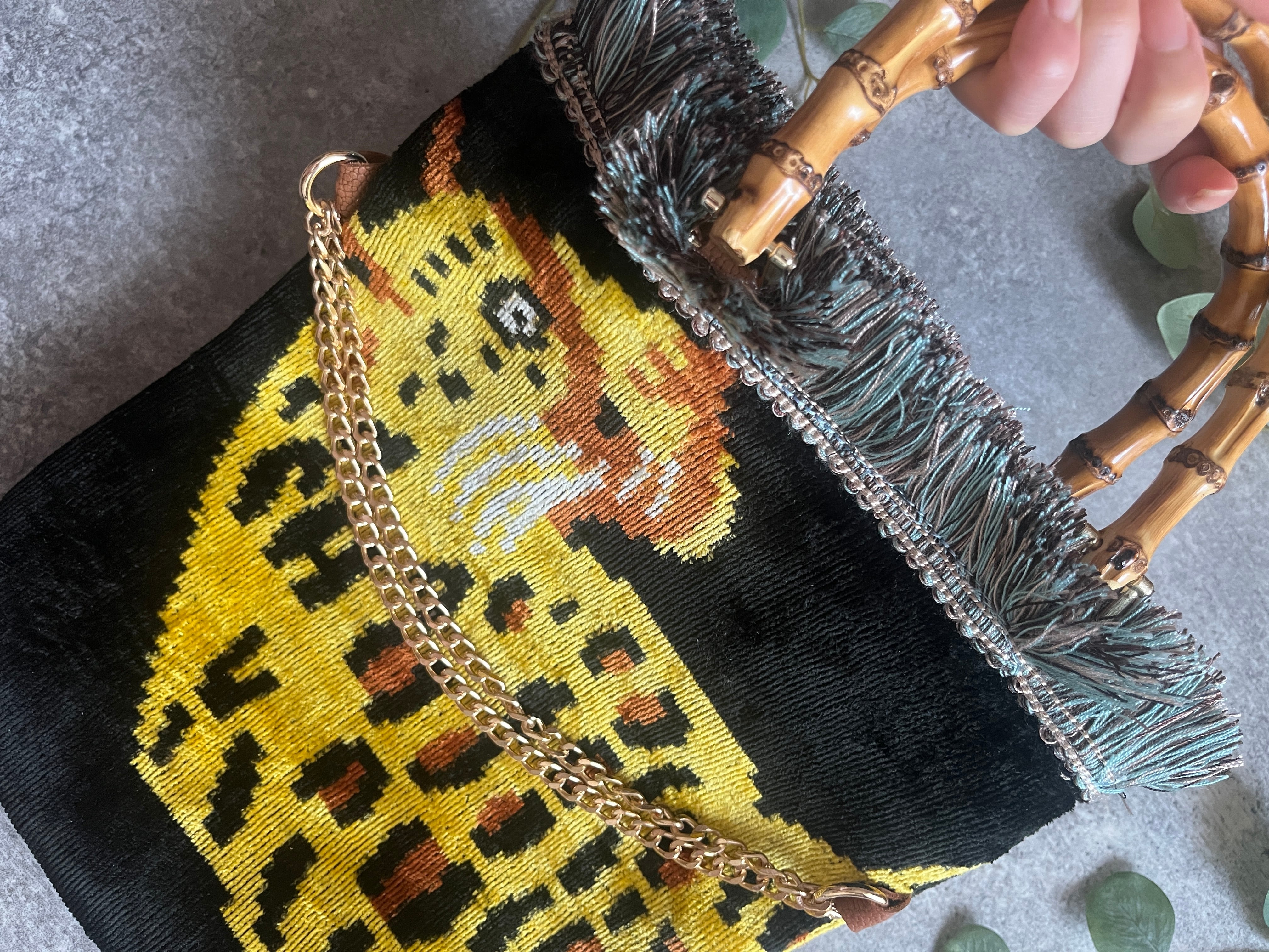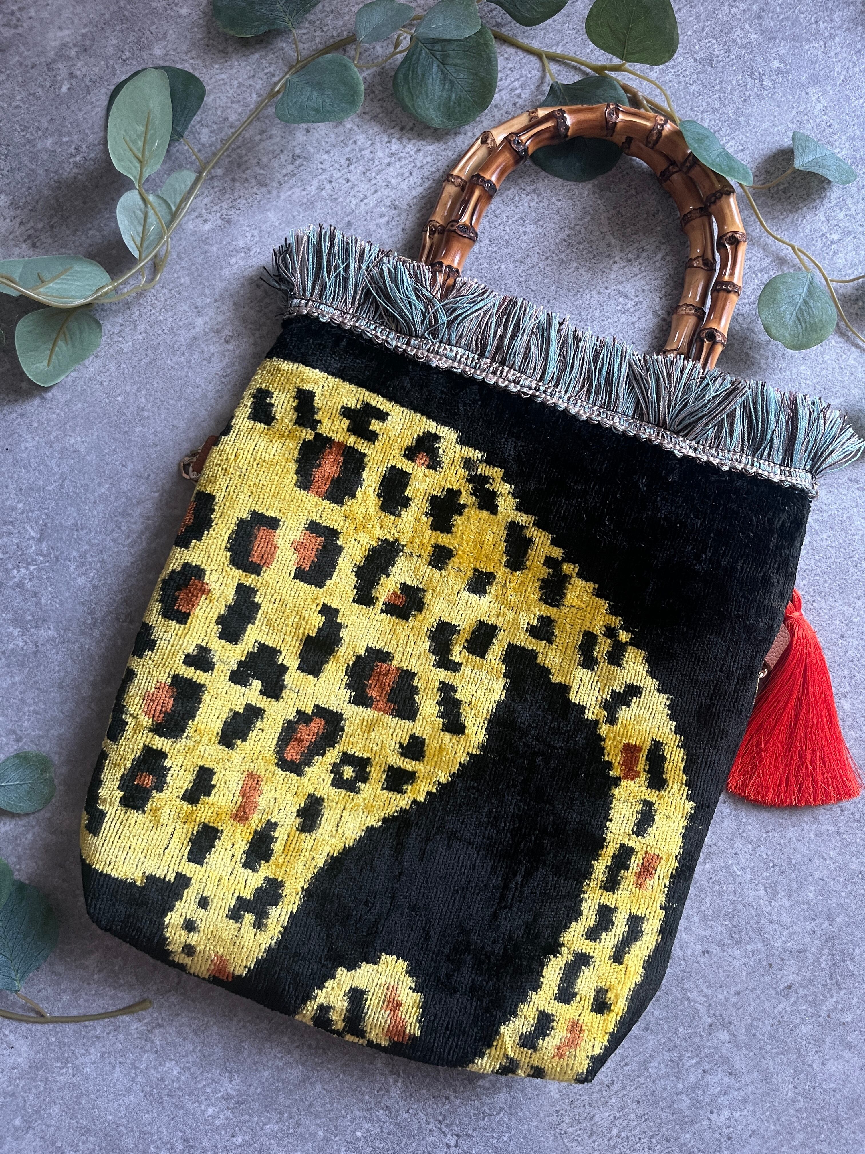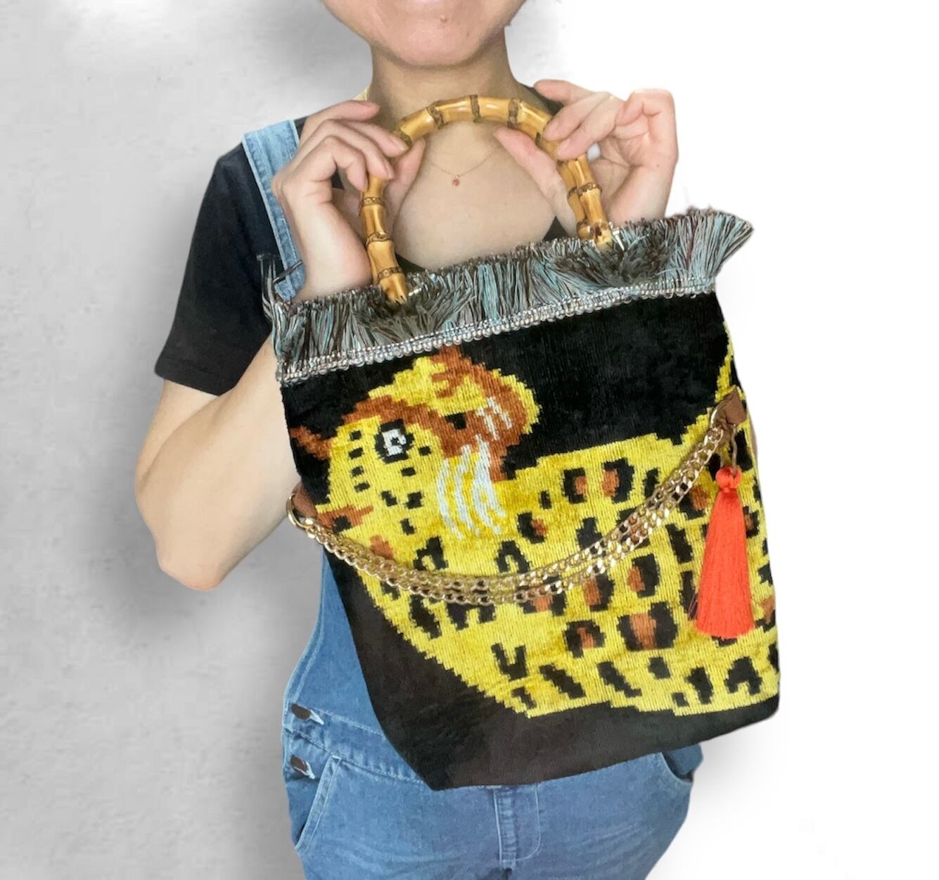 そして上部にあしらわれたフリンジとバンブーハンドルがまた全体のバランスを上品に仕立ててくれています。