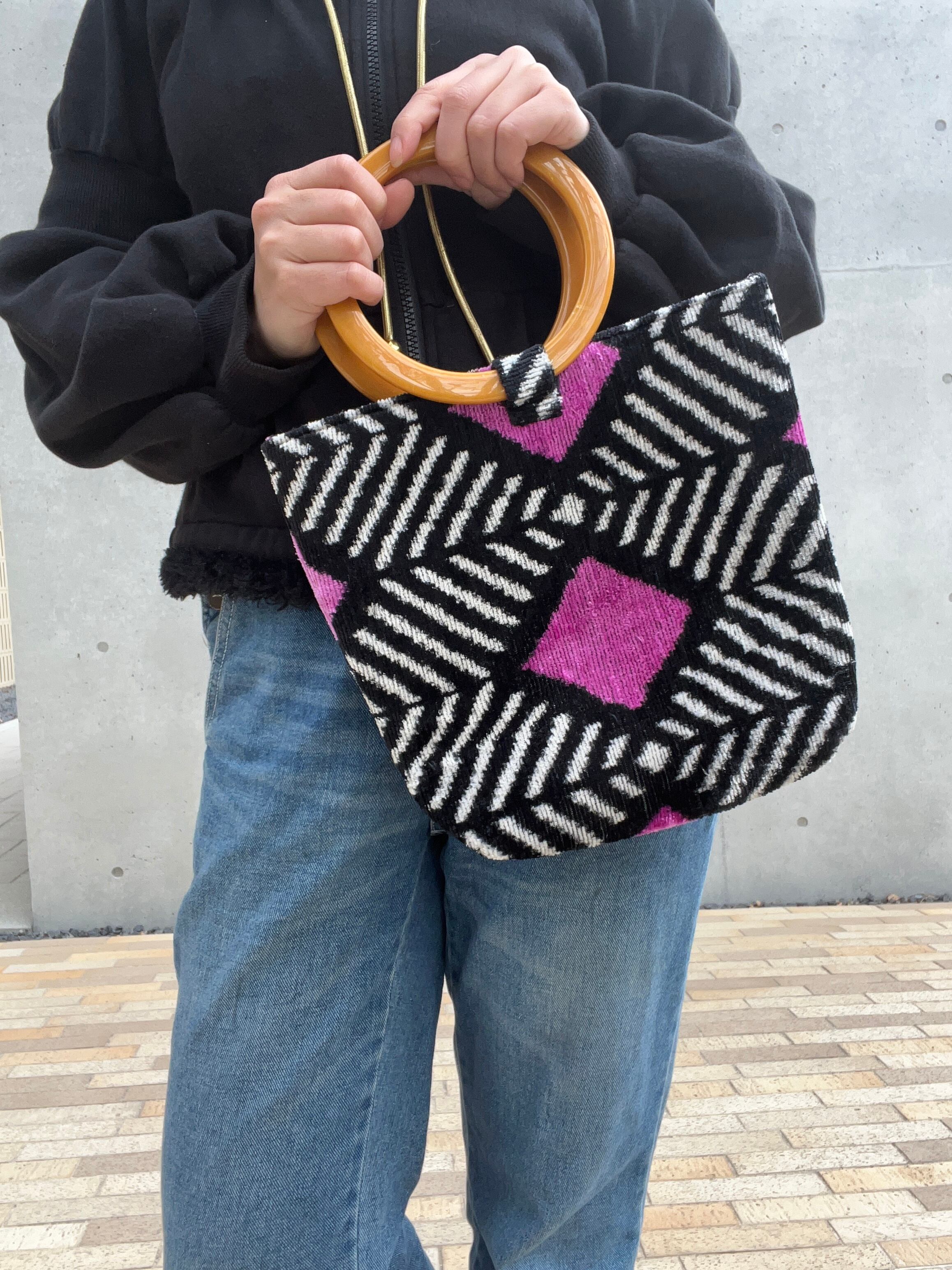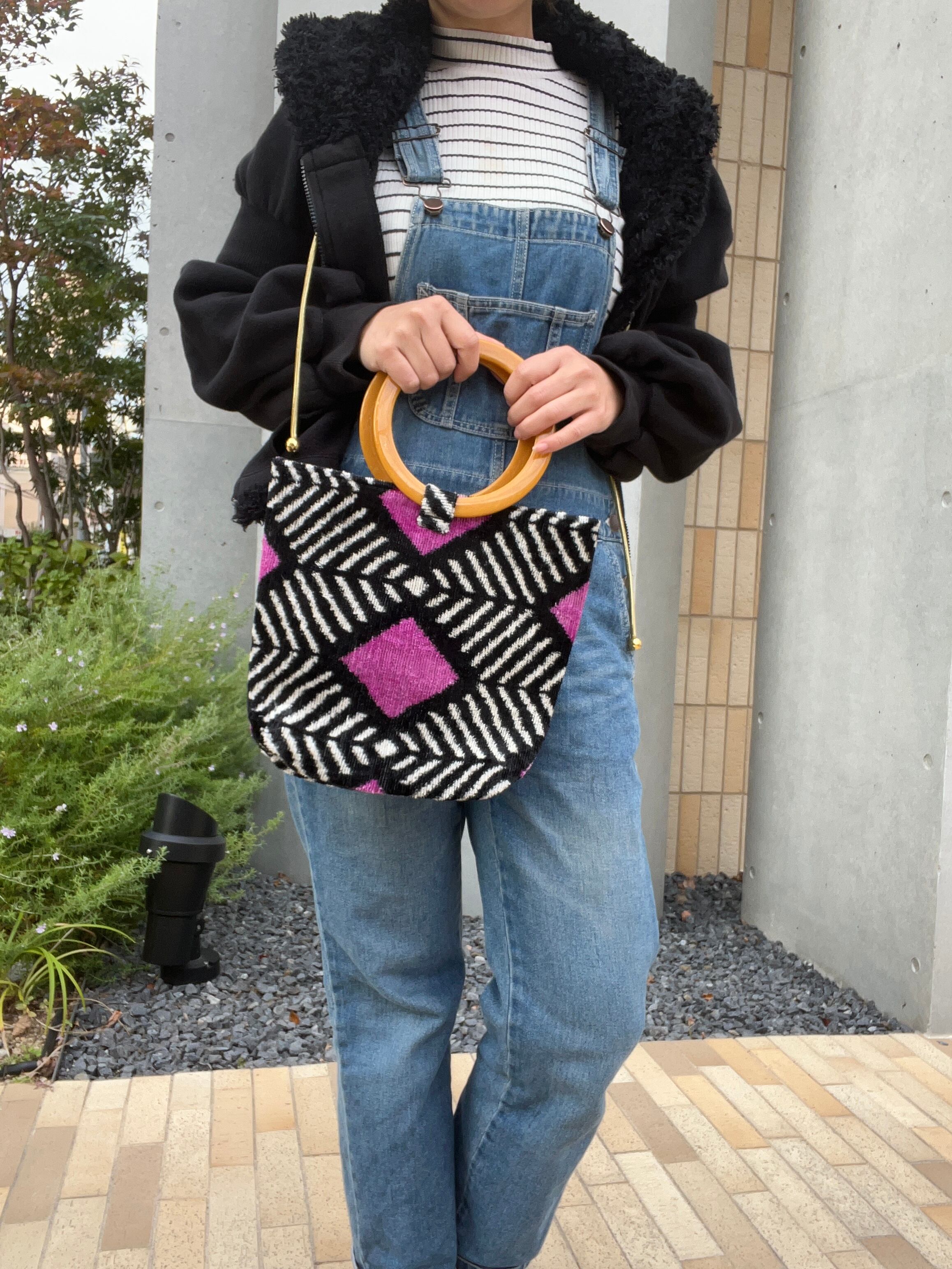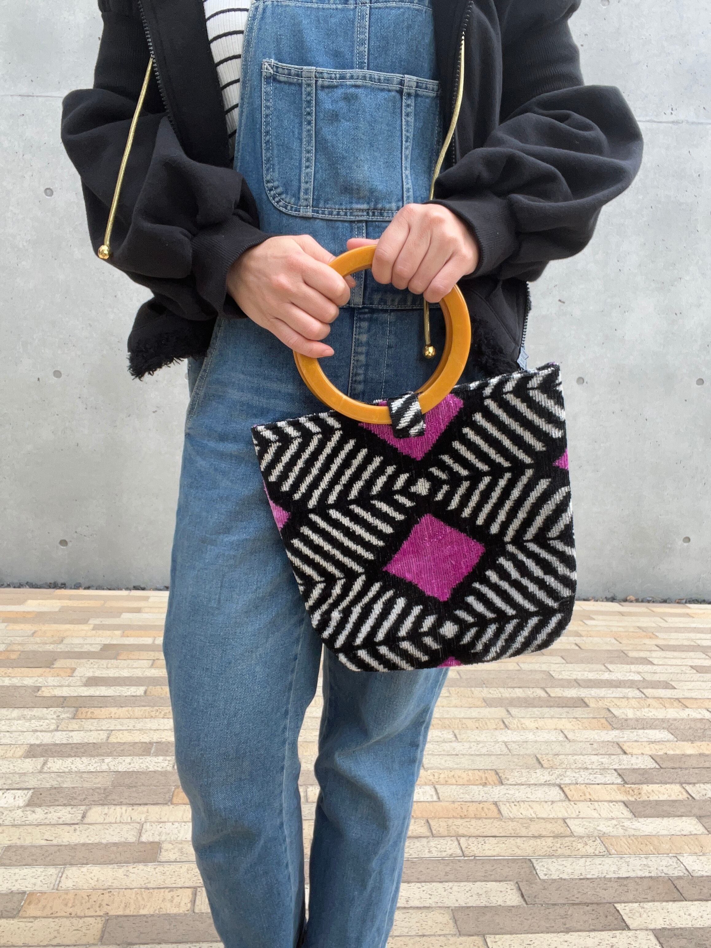 そしてウッドカラーな雲母の円ハンドルが全体のバランスをセンス良くまとめており、とても素敵なバッグとなります。