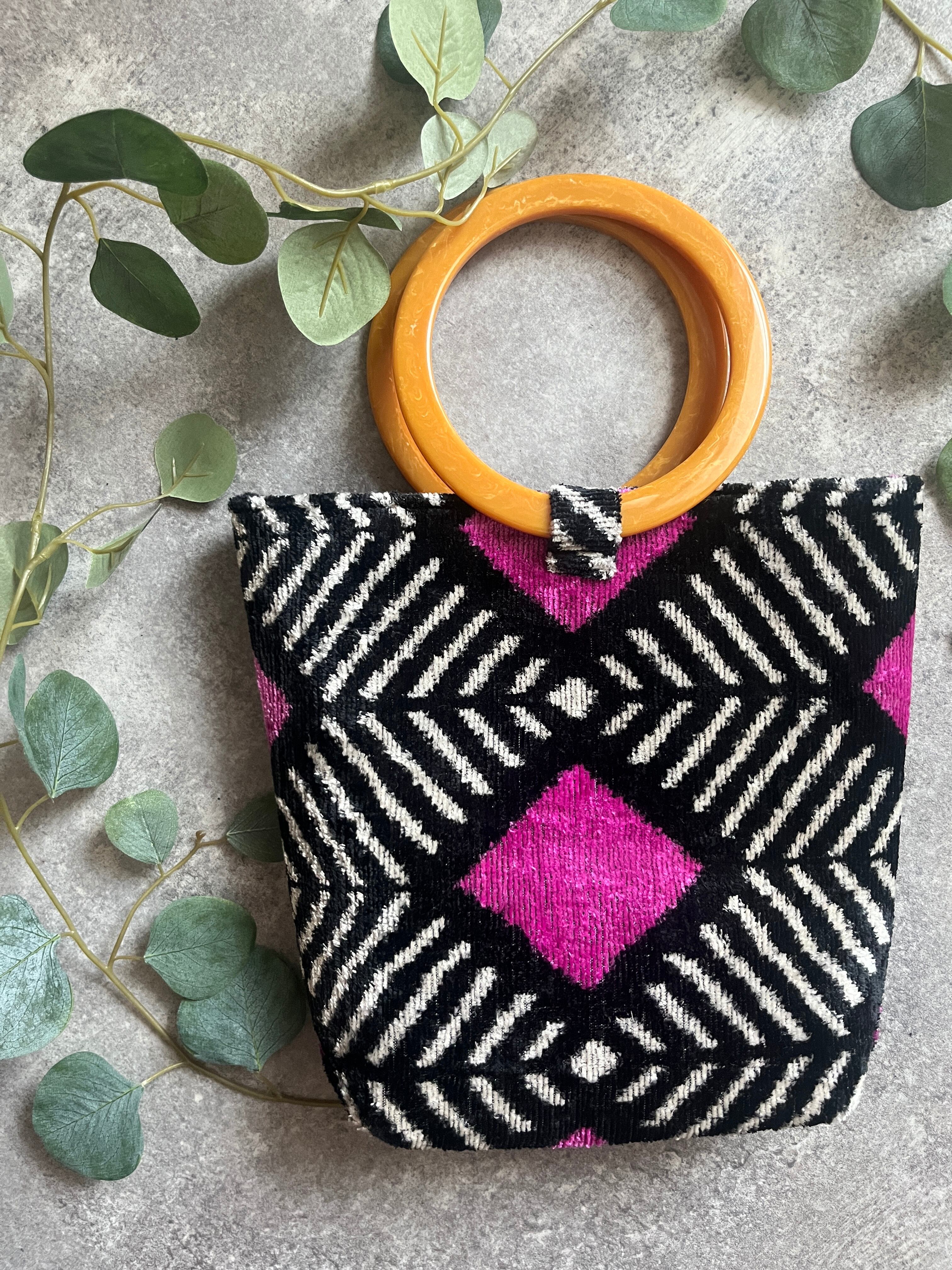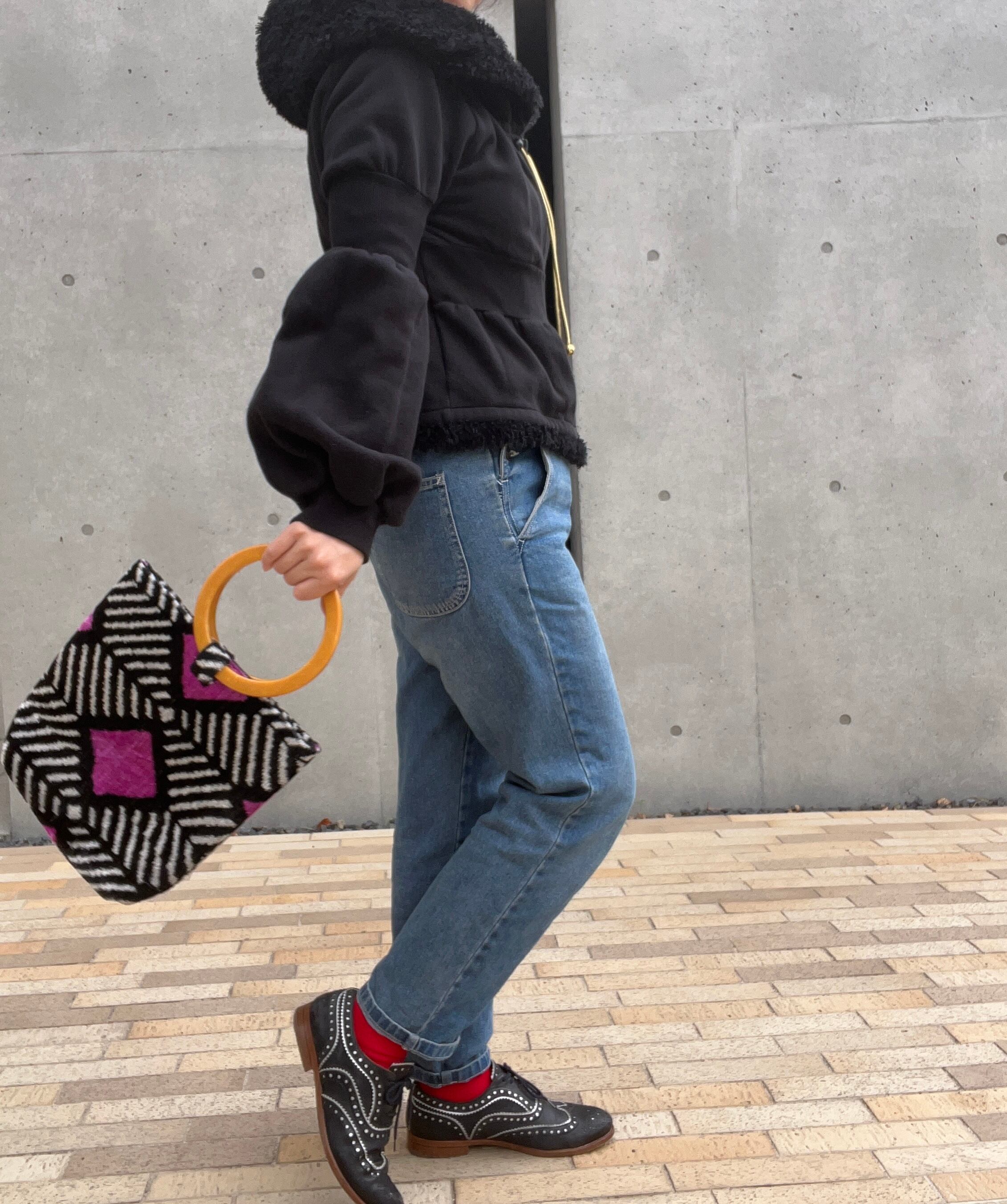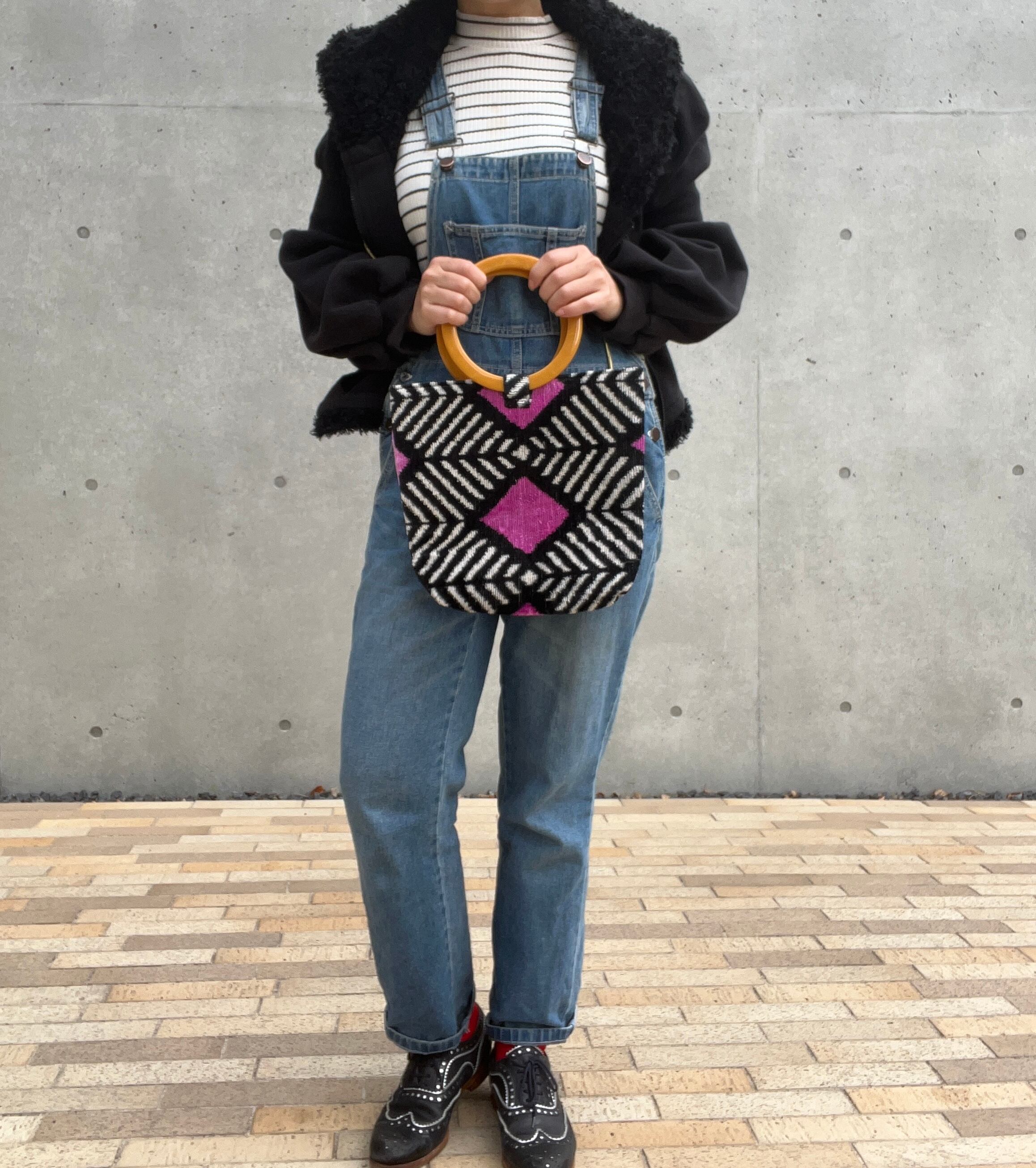 そしてウッドカラーな雲母の円ハンドルが全体のバランスをセンス良くまとめており、とても素敵なバッグとなります。