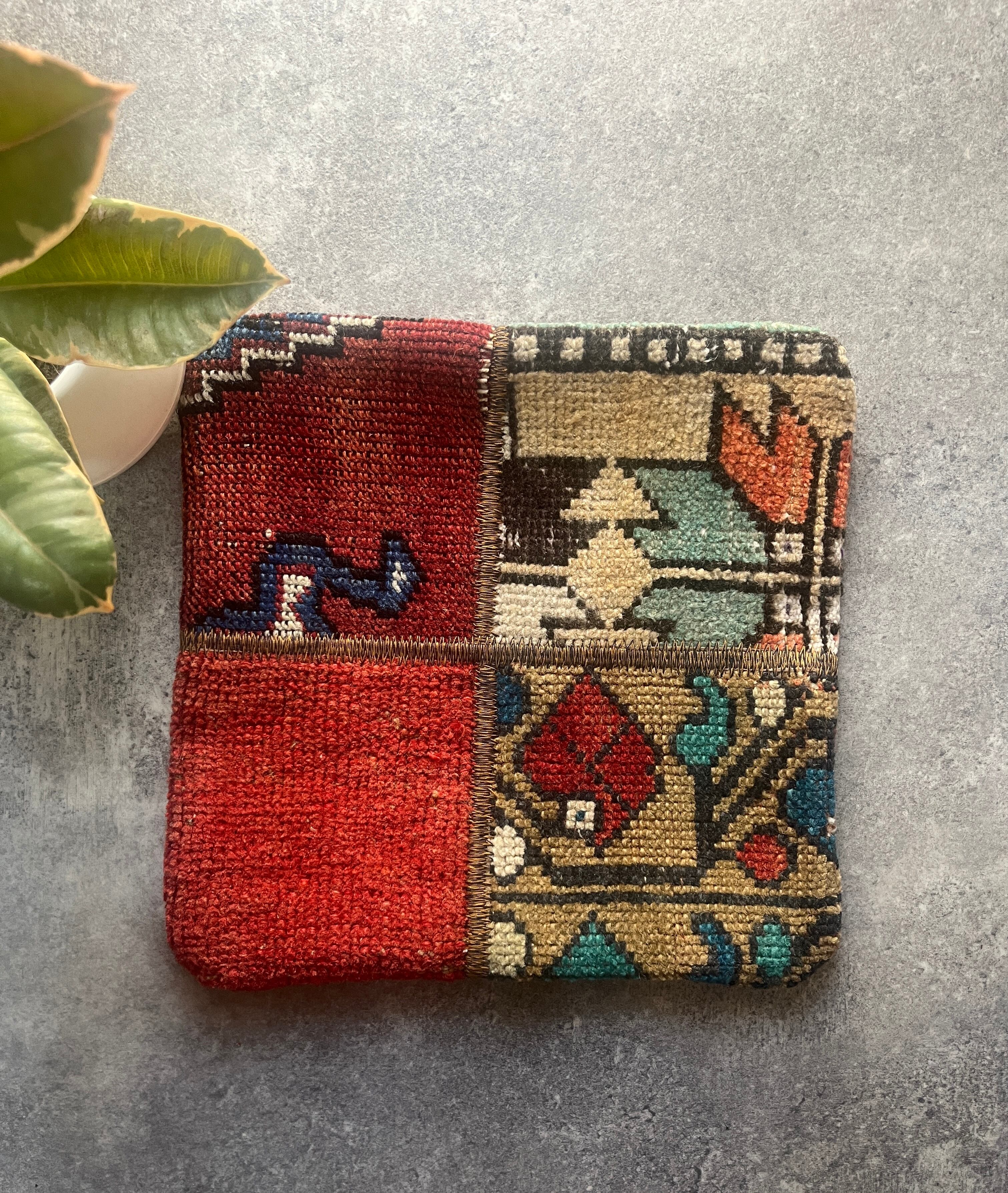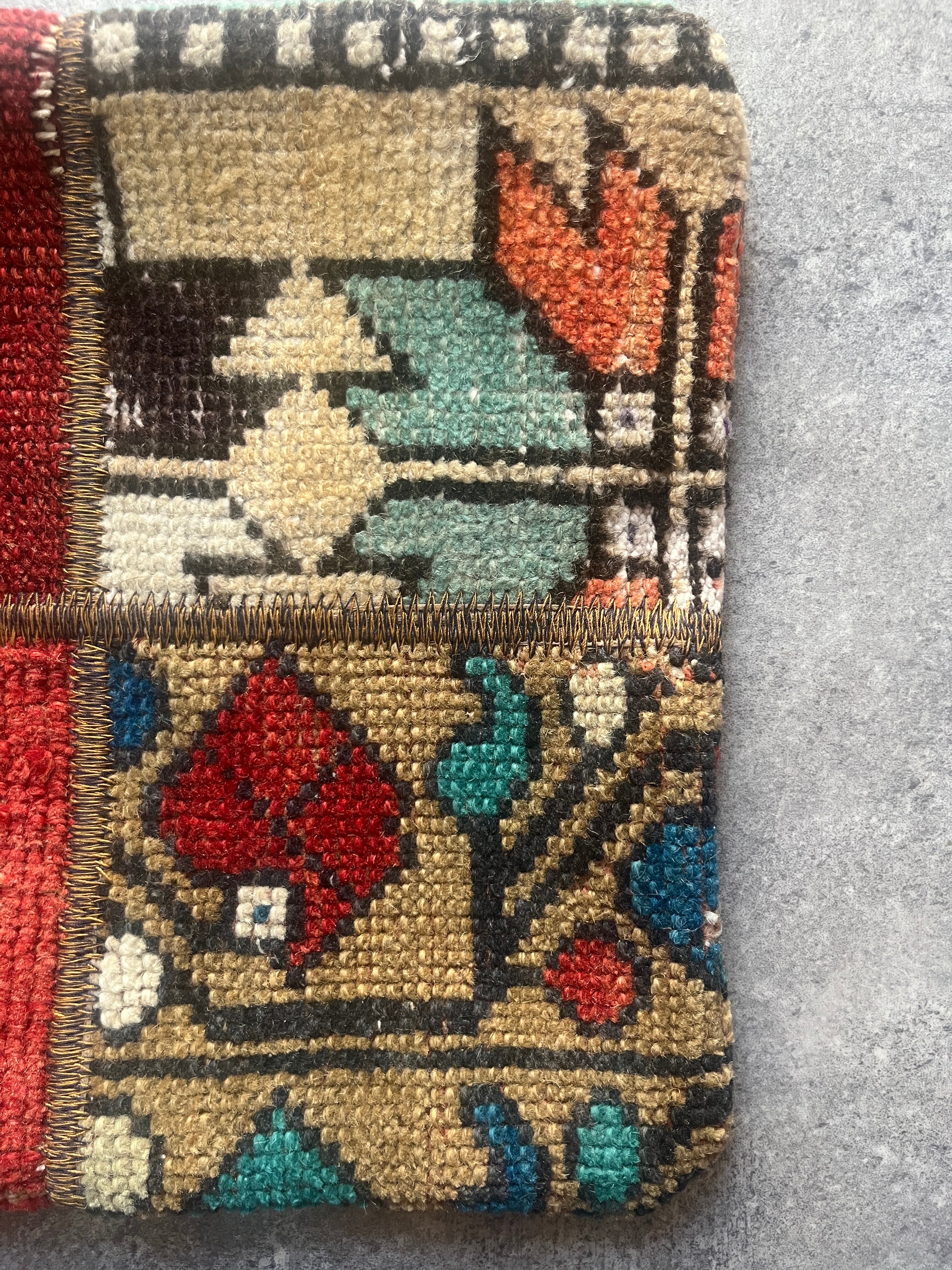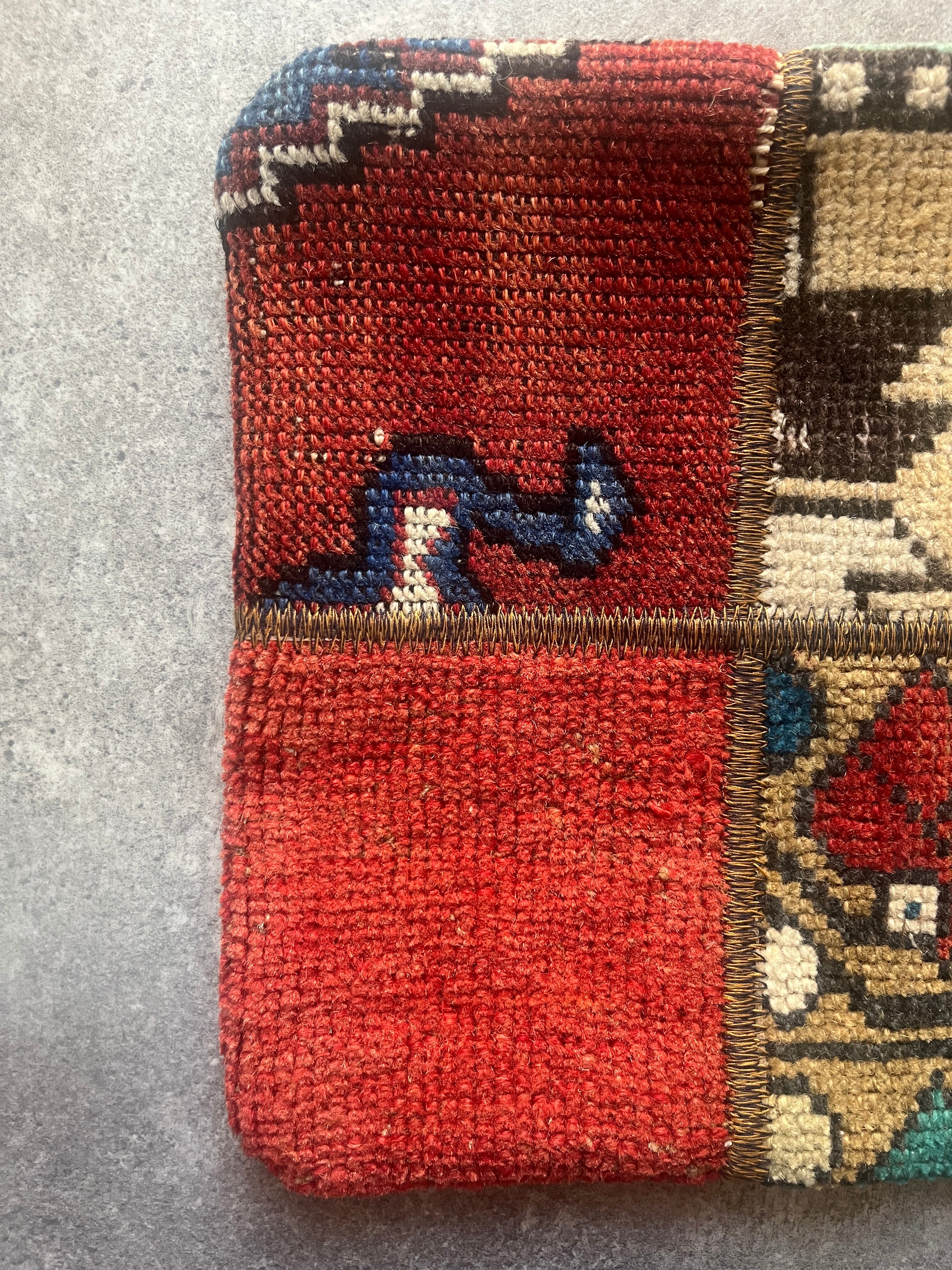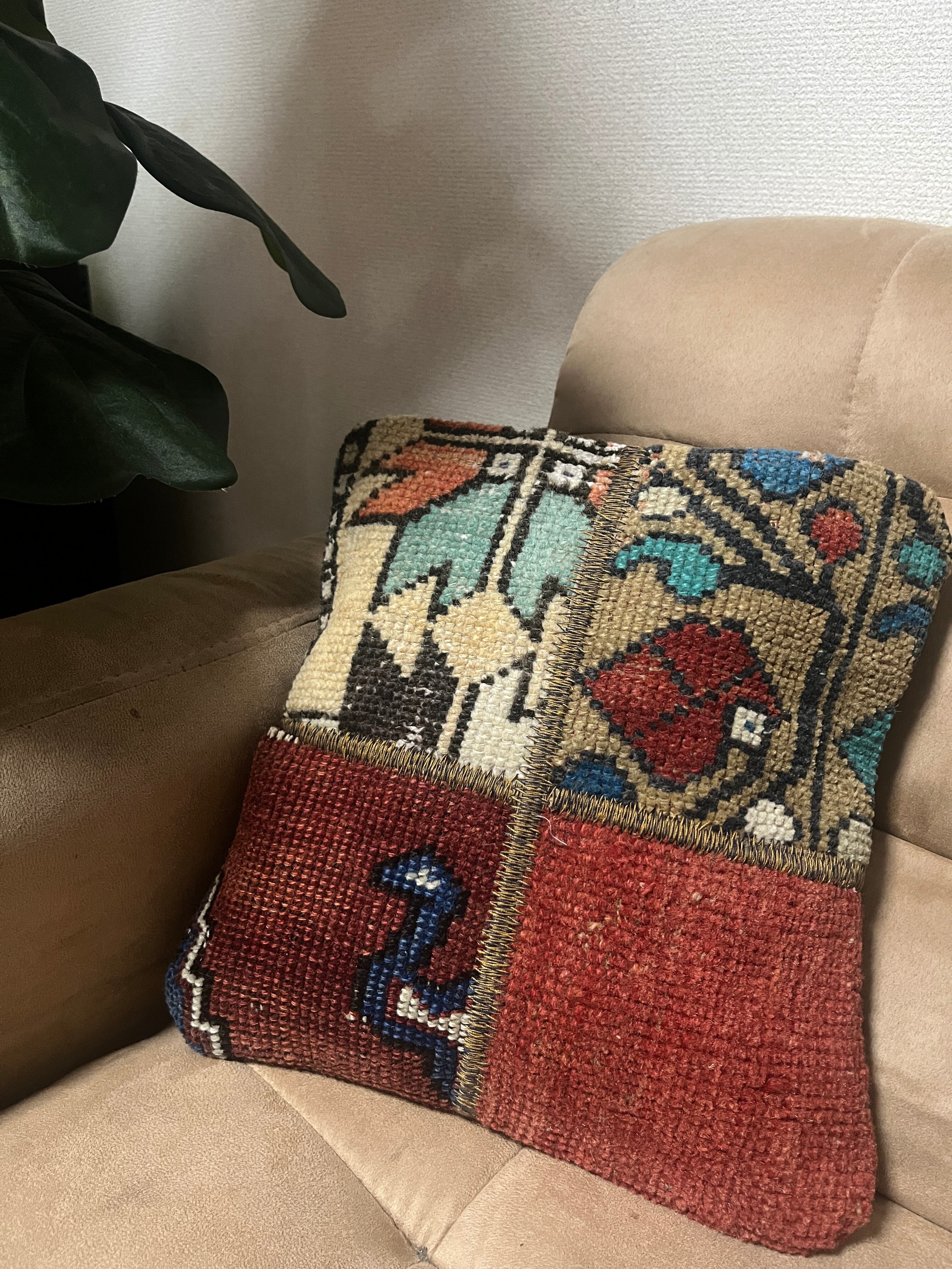 ヴィンテージラグの断面を1枚のデザインに紡ぎ合わせたクッションカバー。