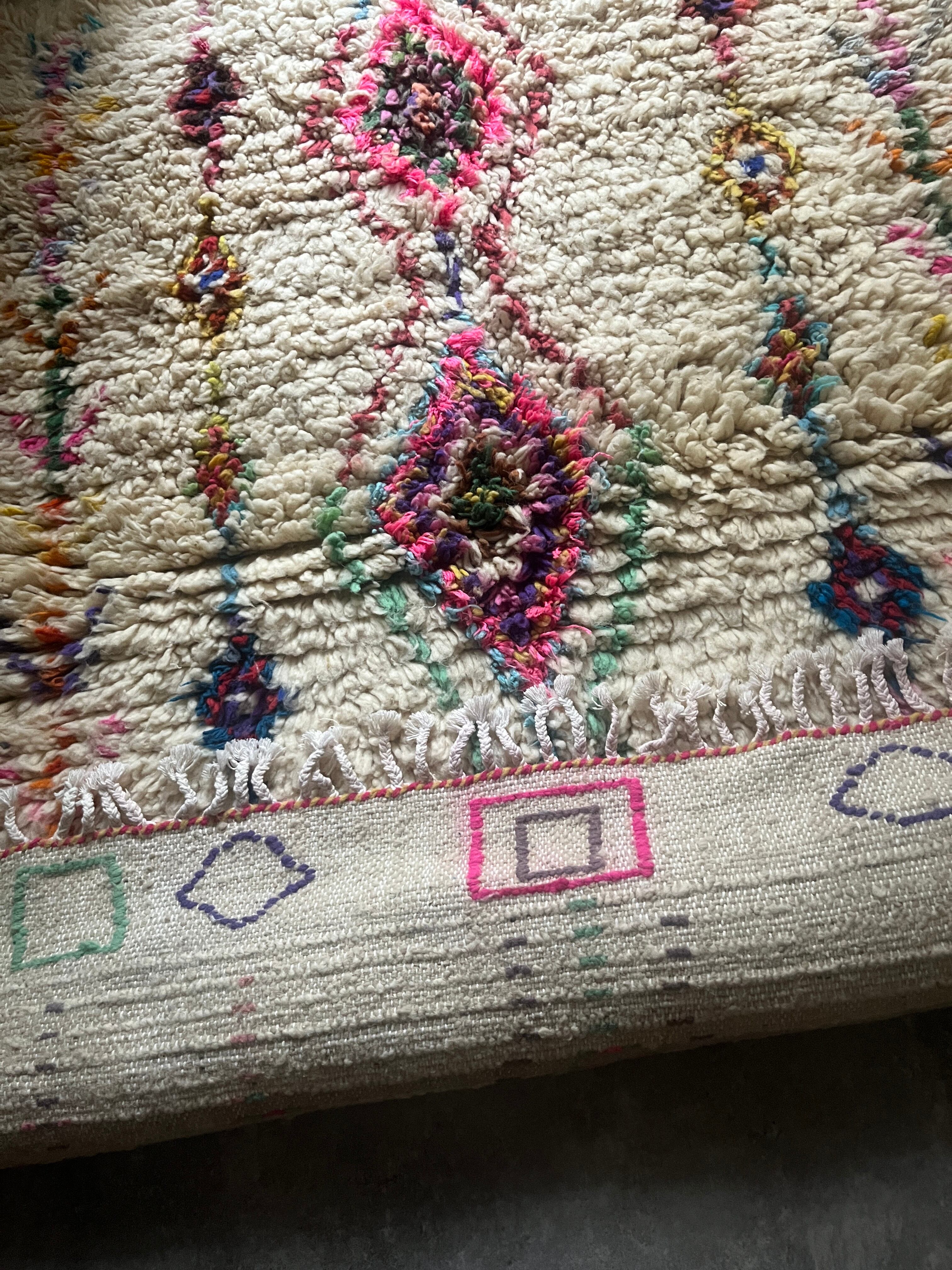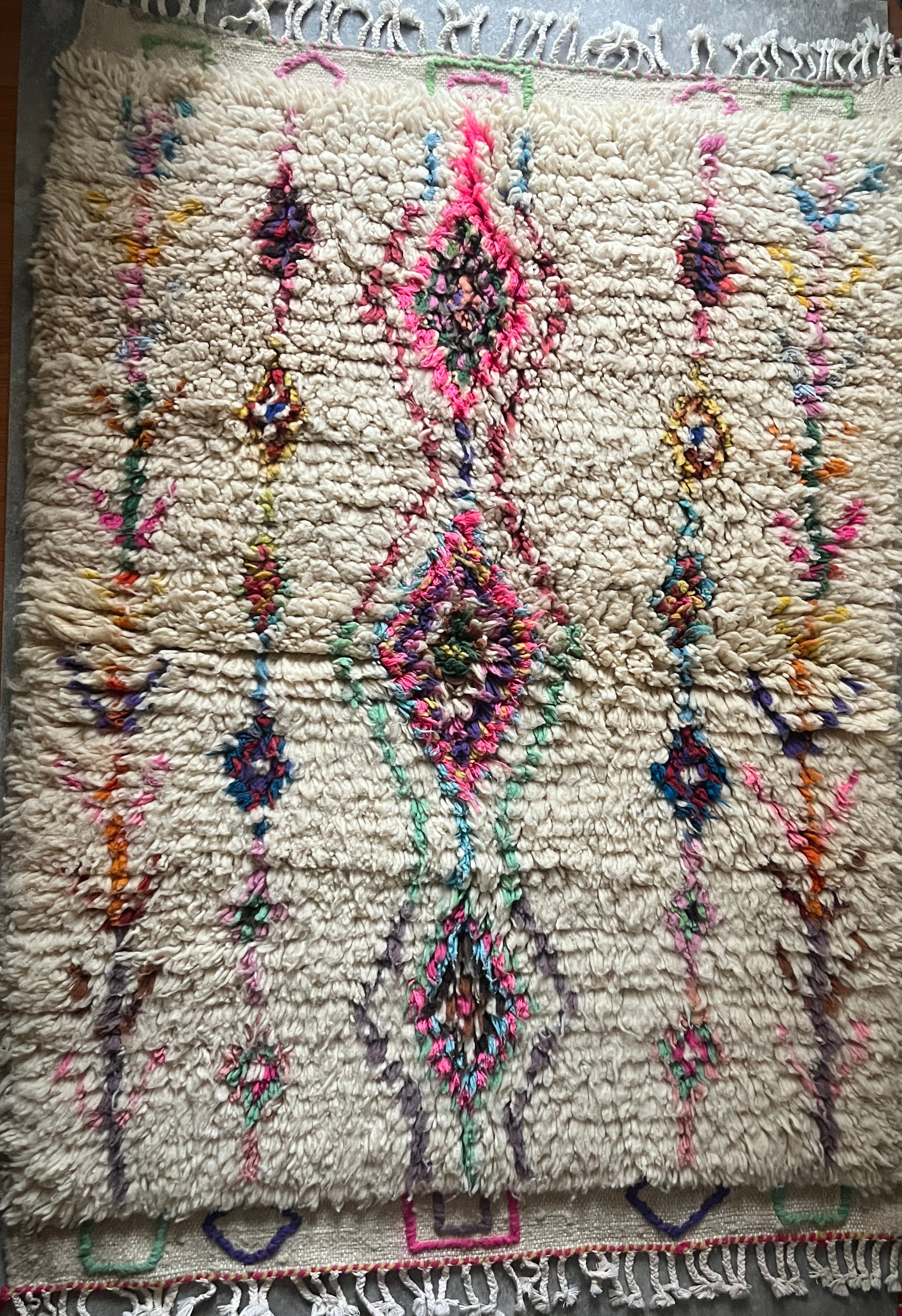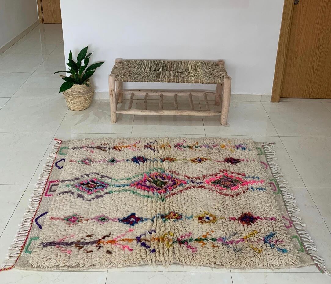 モロッコ中部のアジラル地方で、長い歴史をもつ種族ベルベル人女性によって、ひとつひとつ丁寧に、手織りで織られる「アジラルラグ」。