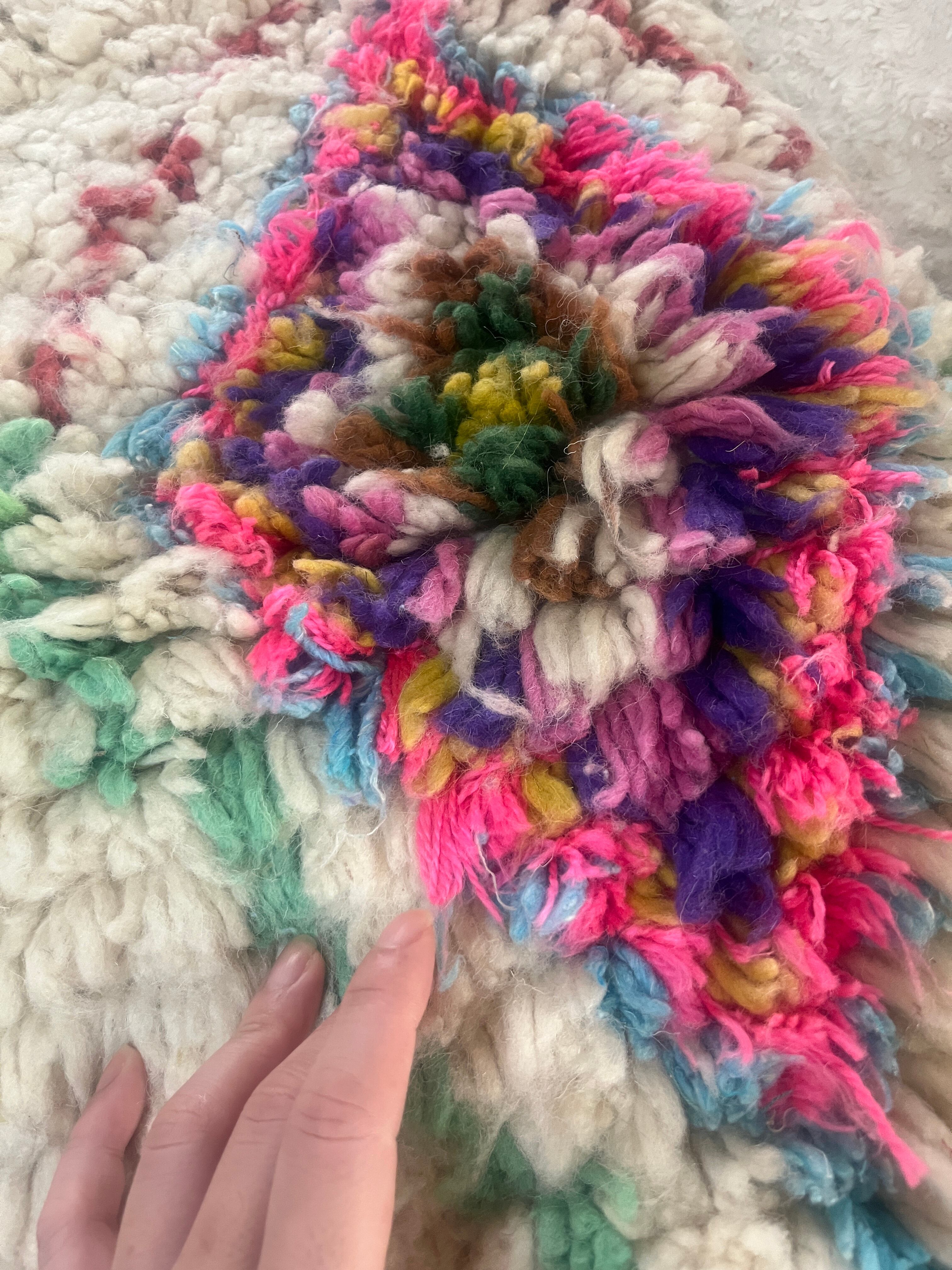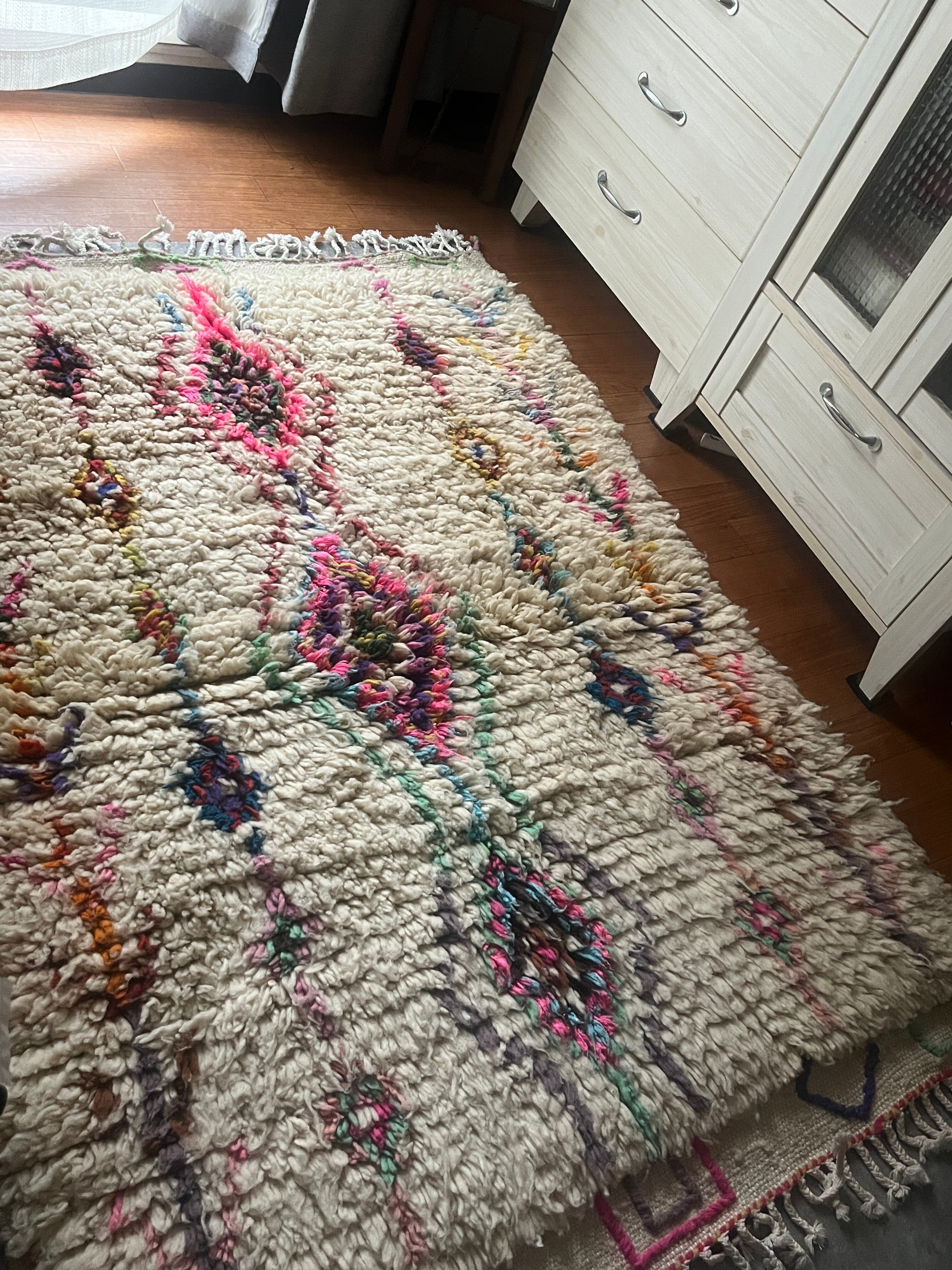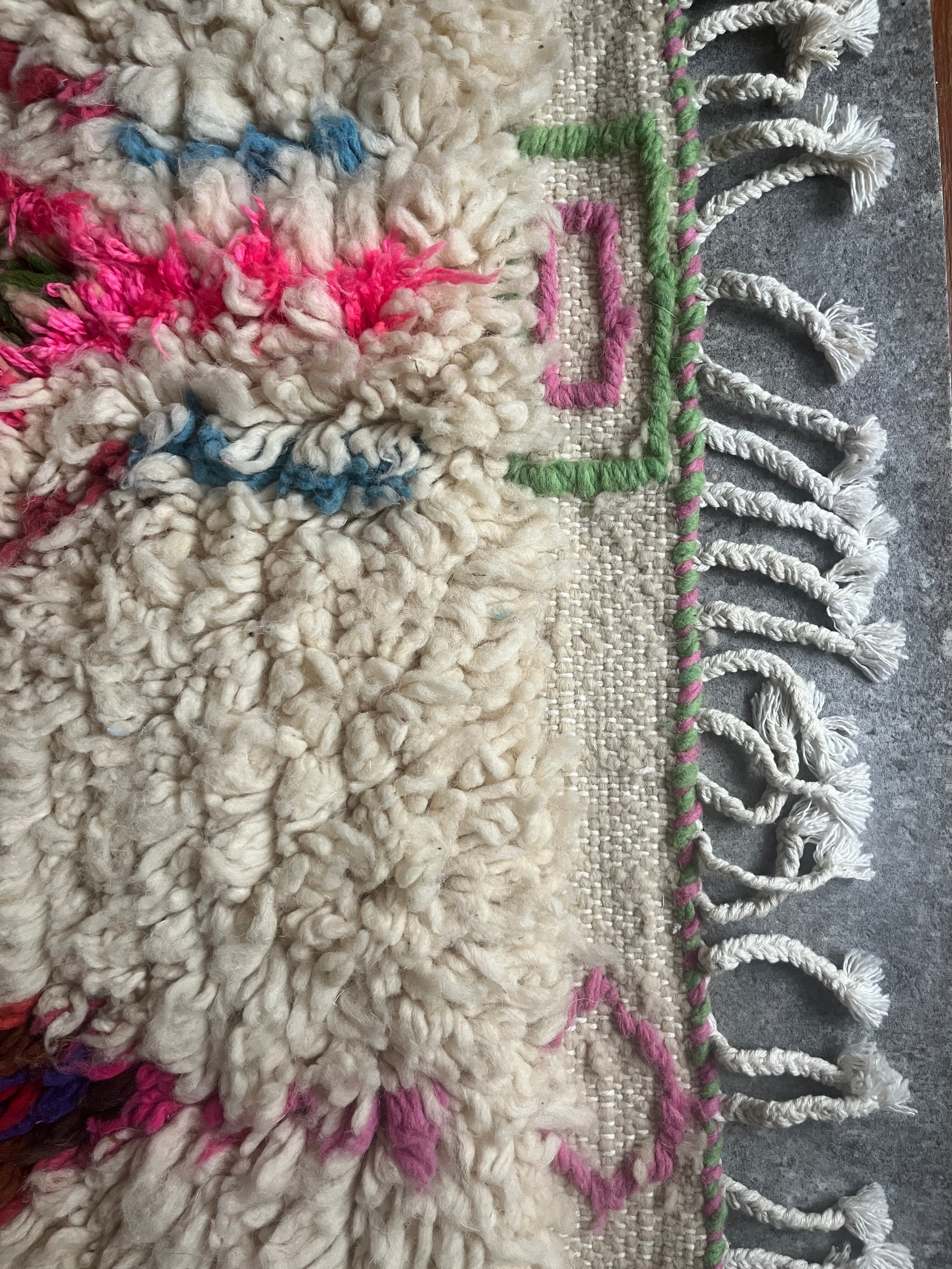 モロッコ中部のアジラル地方で、長い歴史をもつ種族ベルベル人女性によって、ひとつひとつ丁寧に、手織りで織られる「アジラルラグ」。