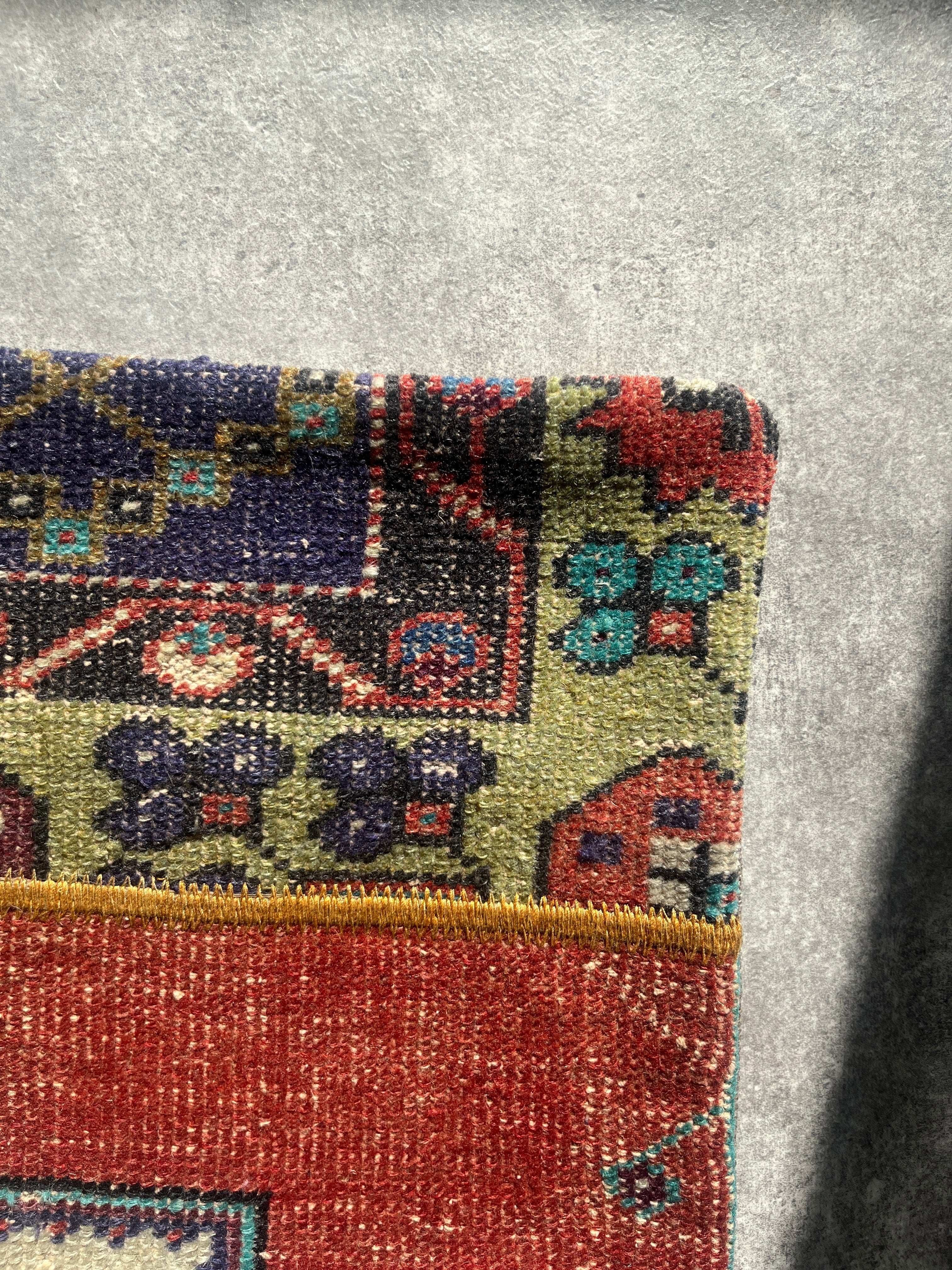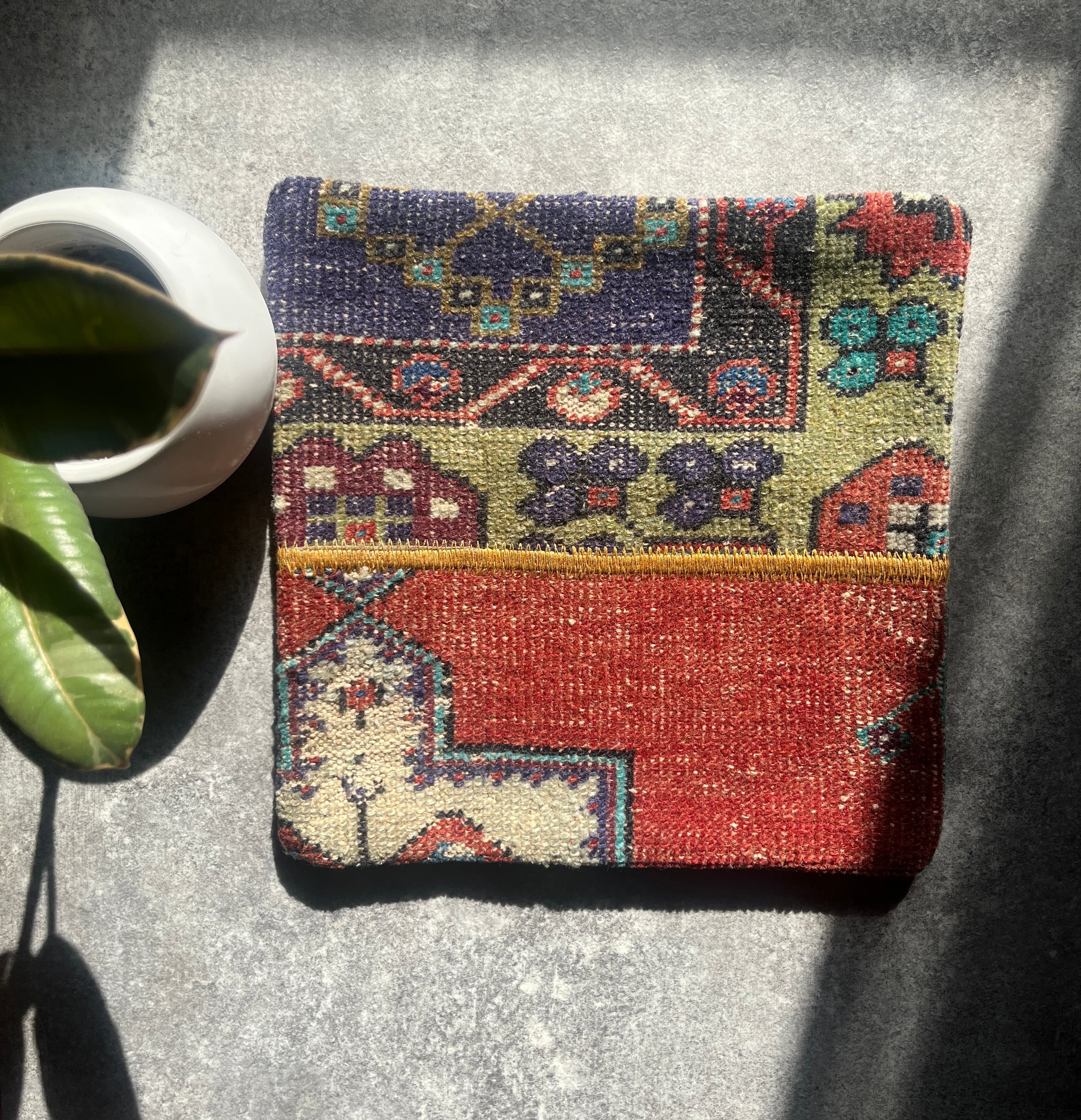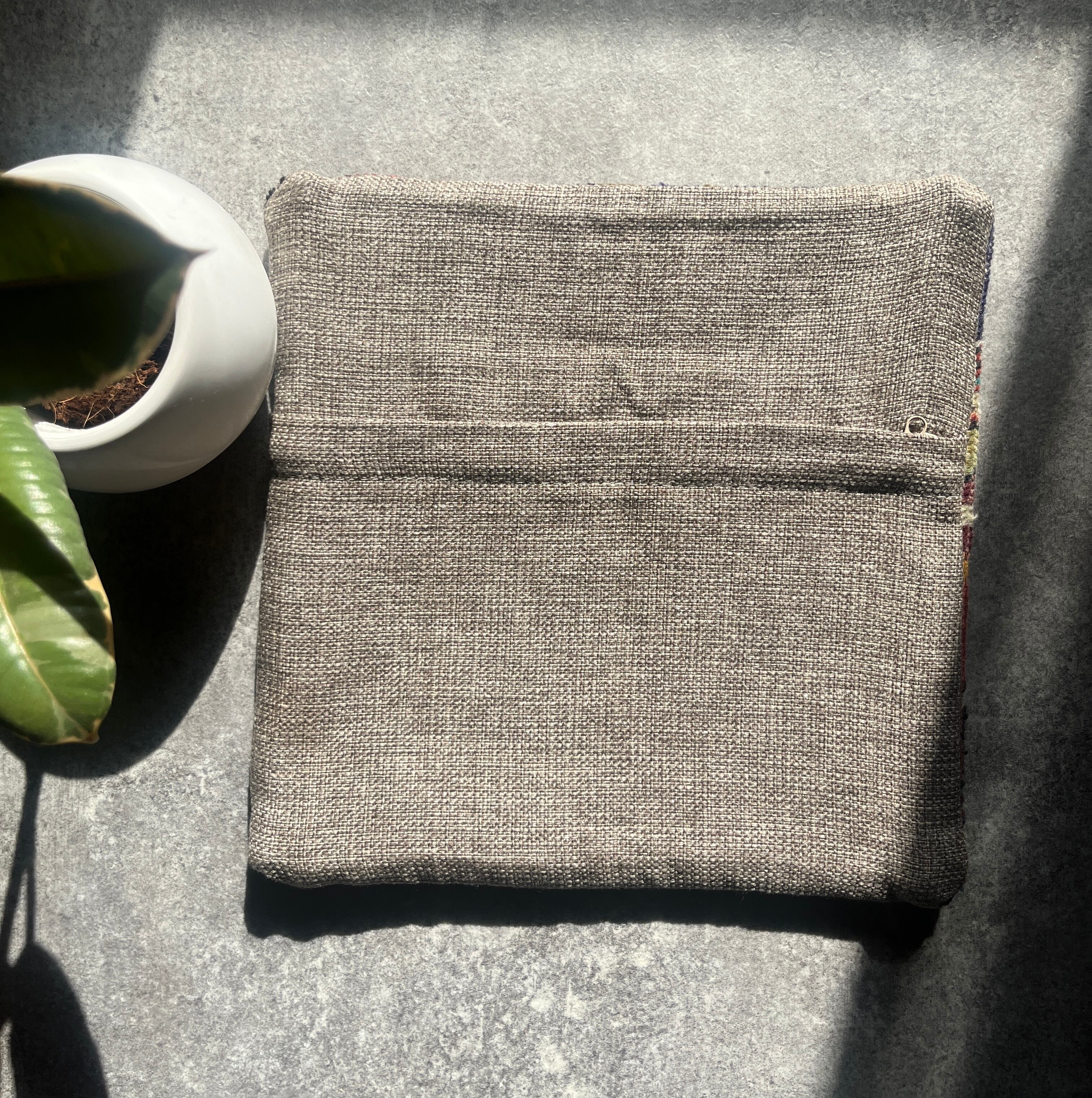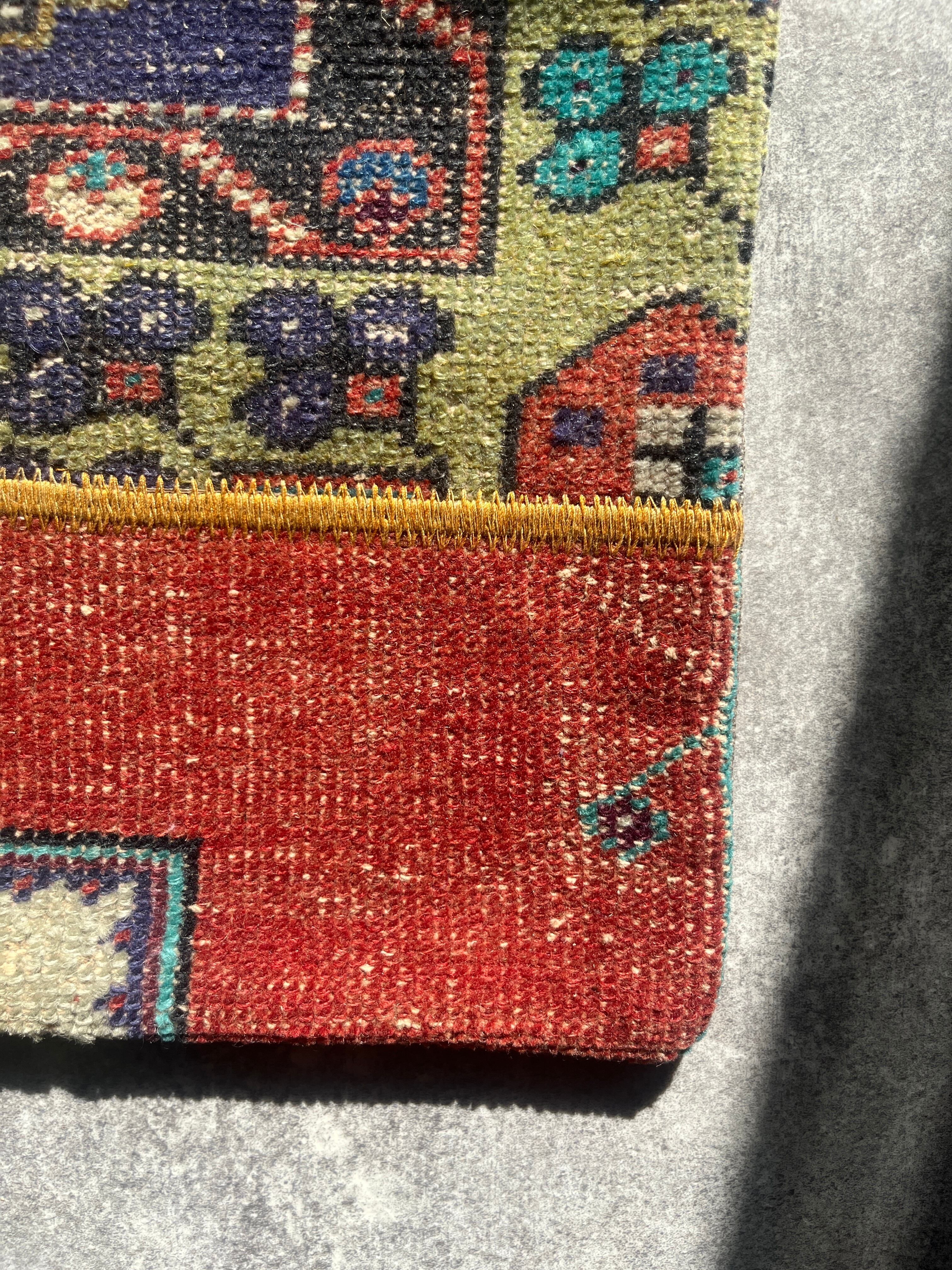 ヴィンテージラグの断面を1枚のデザインに紡ぎ合わせたクッションカバー。