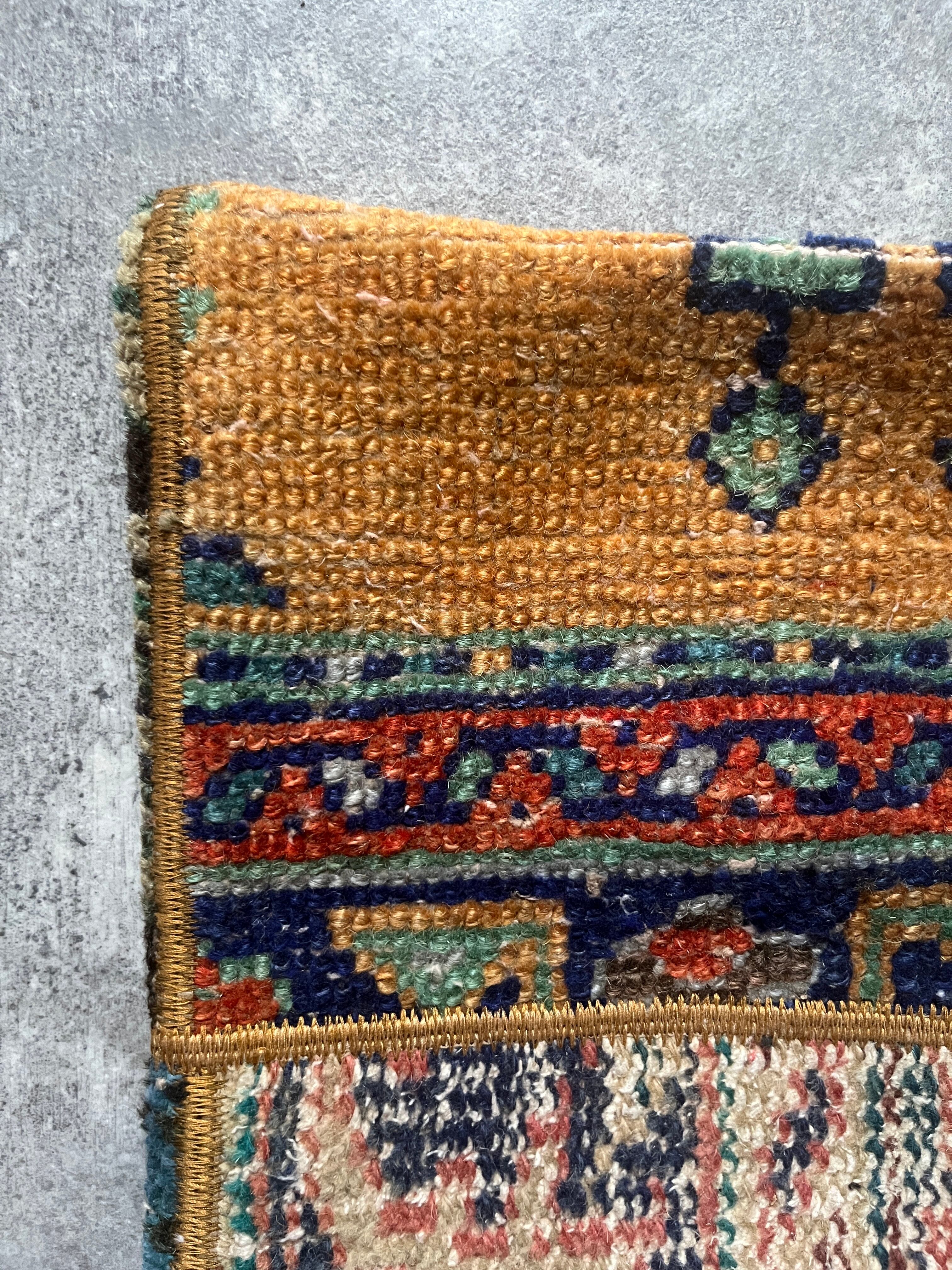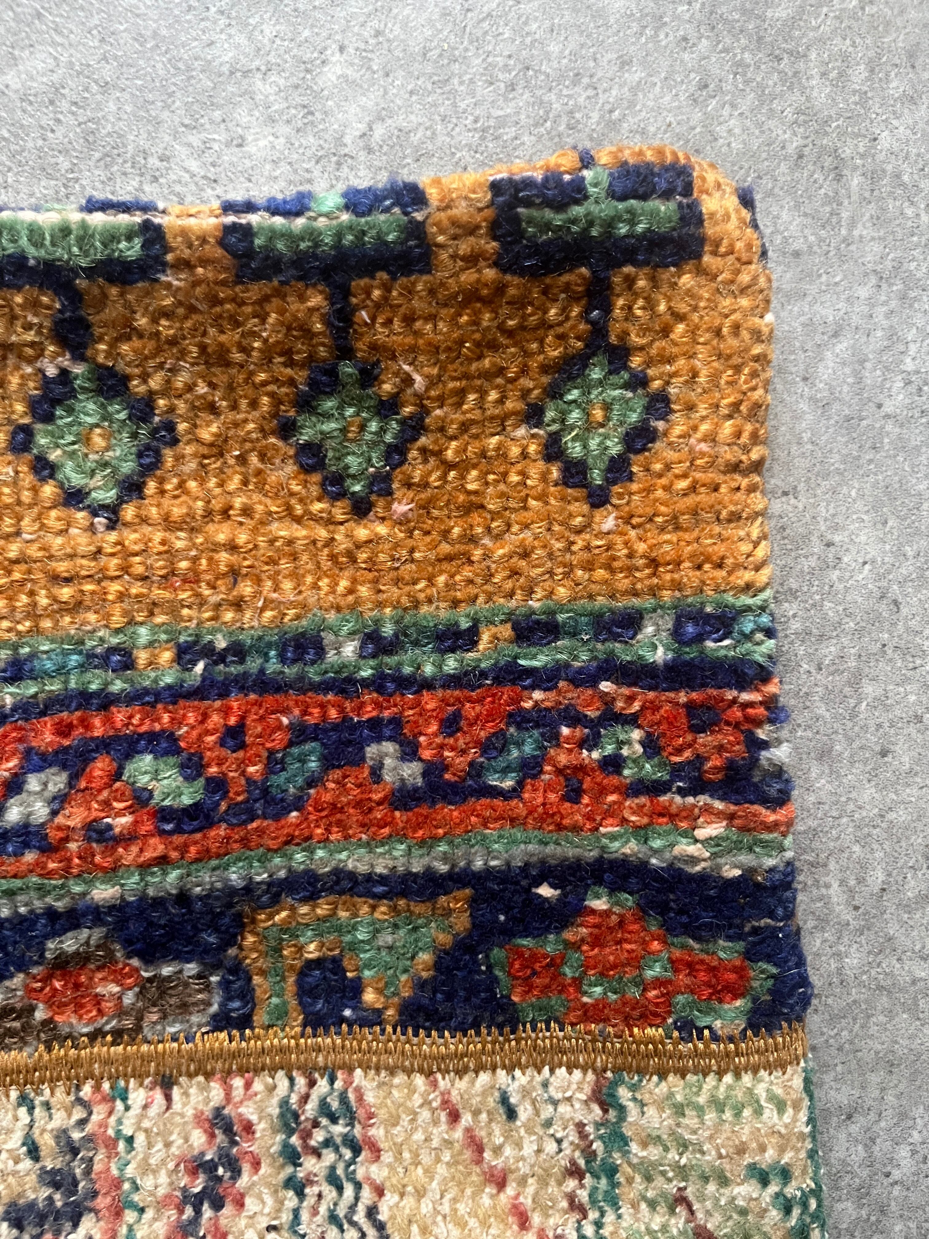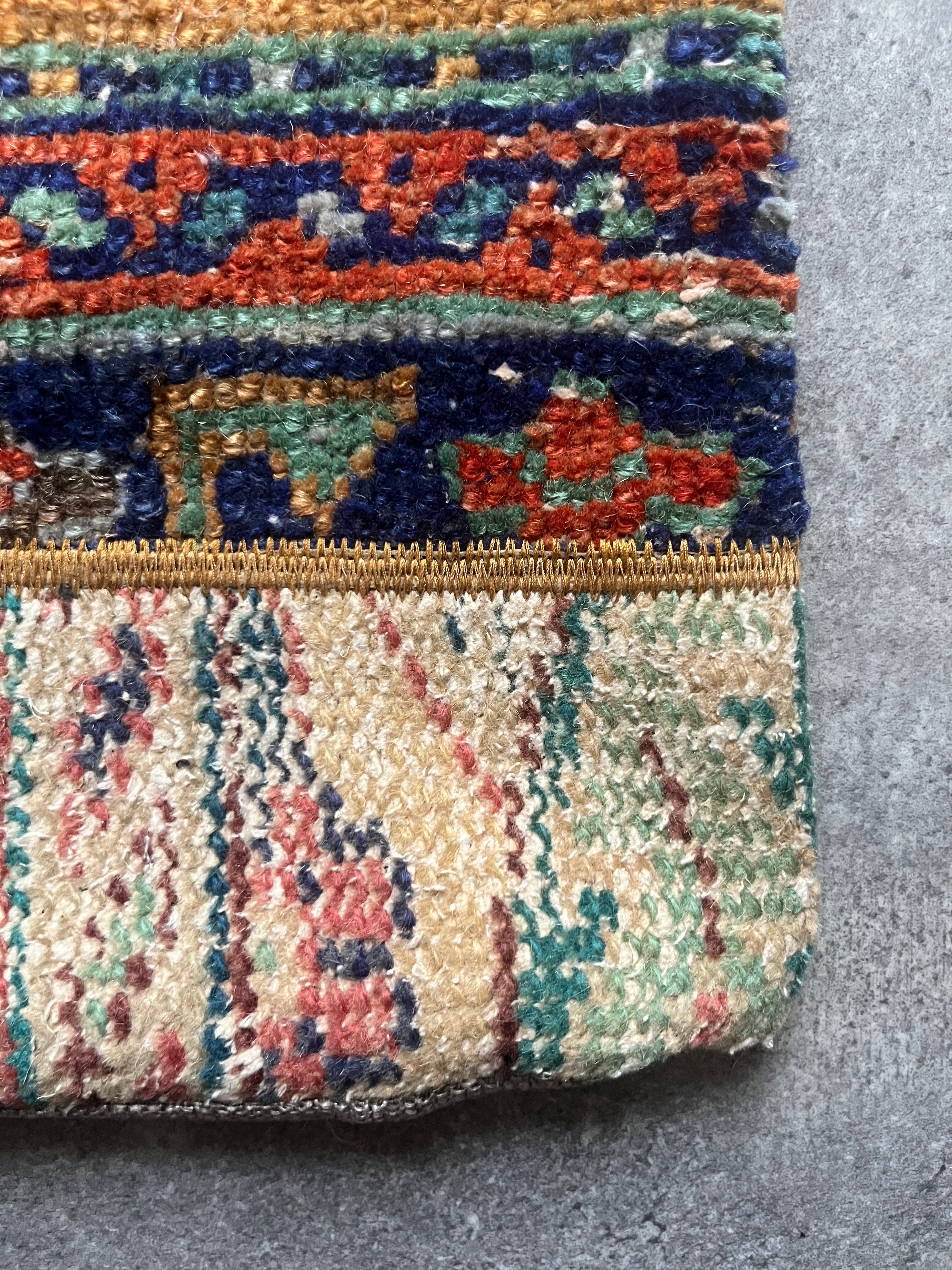 ヴィンテージラグの断面を1枚のデザインに紡ぎ合わせたクッションカバー。