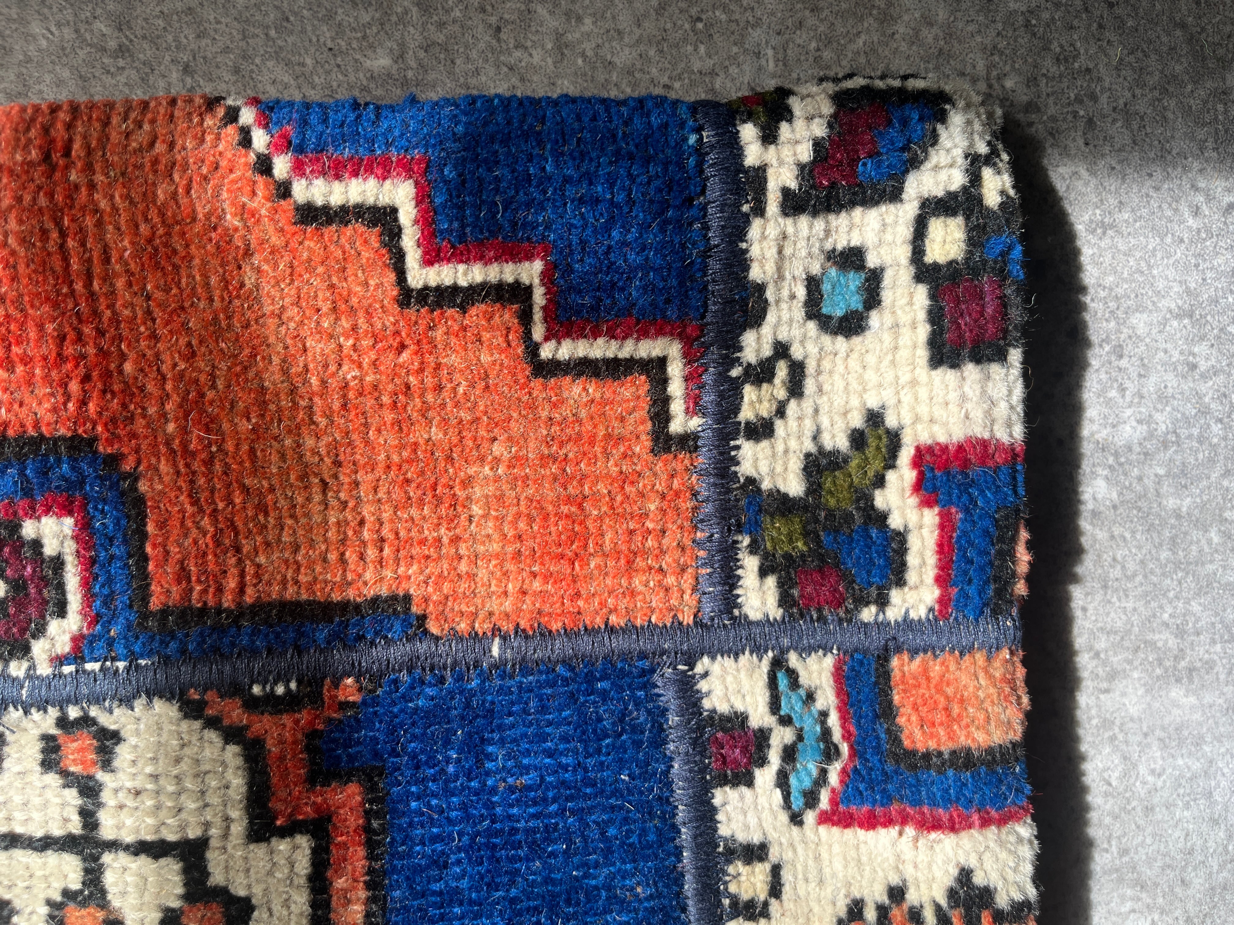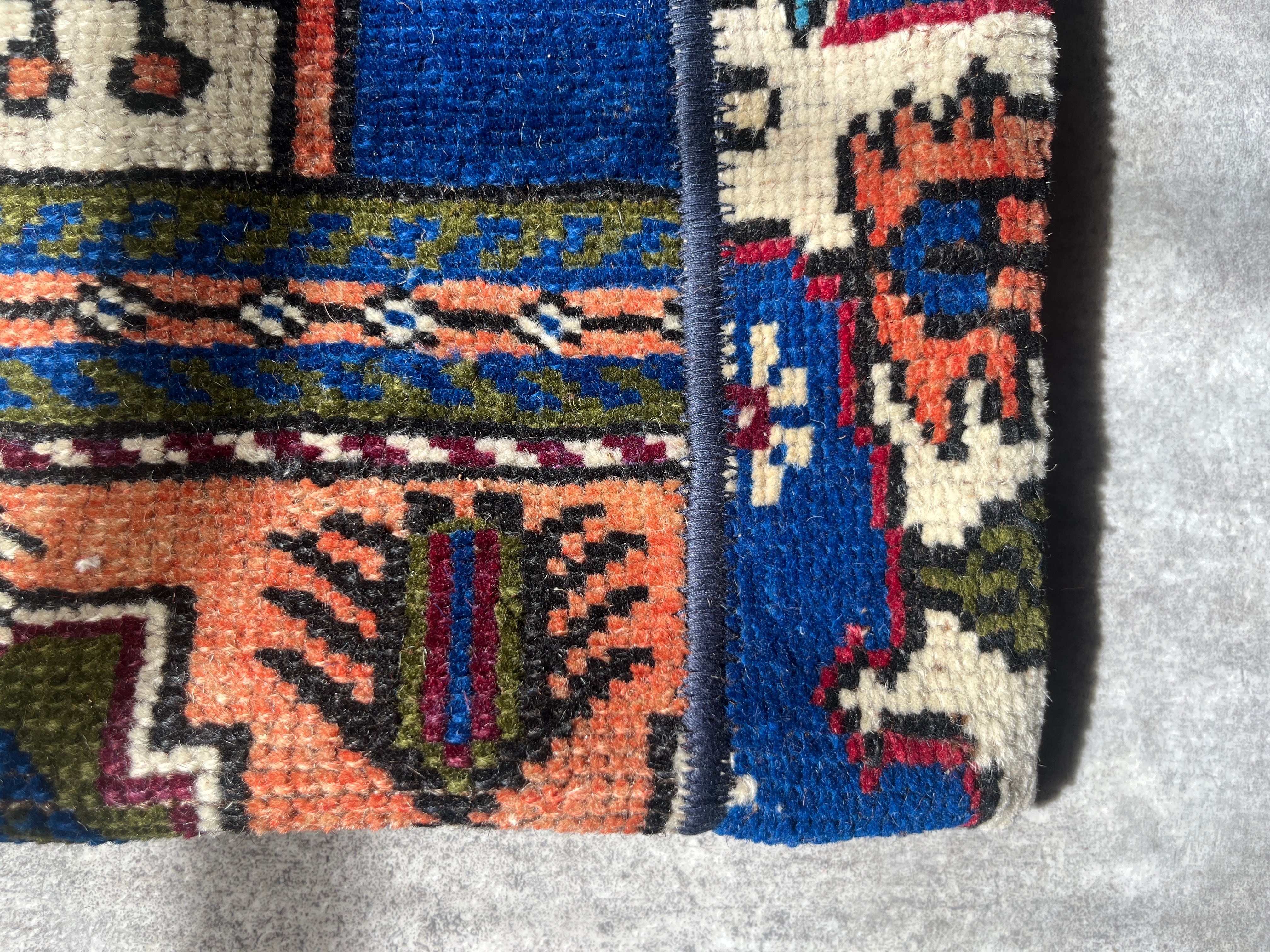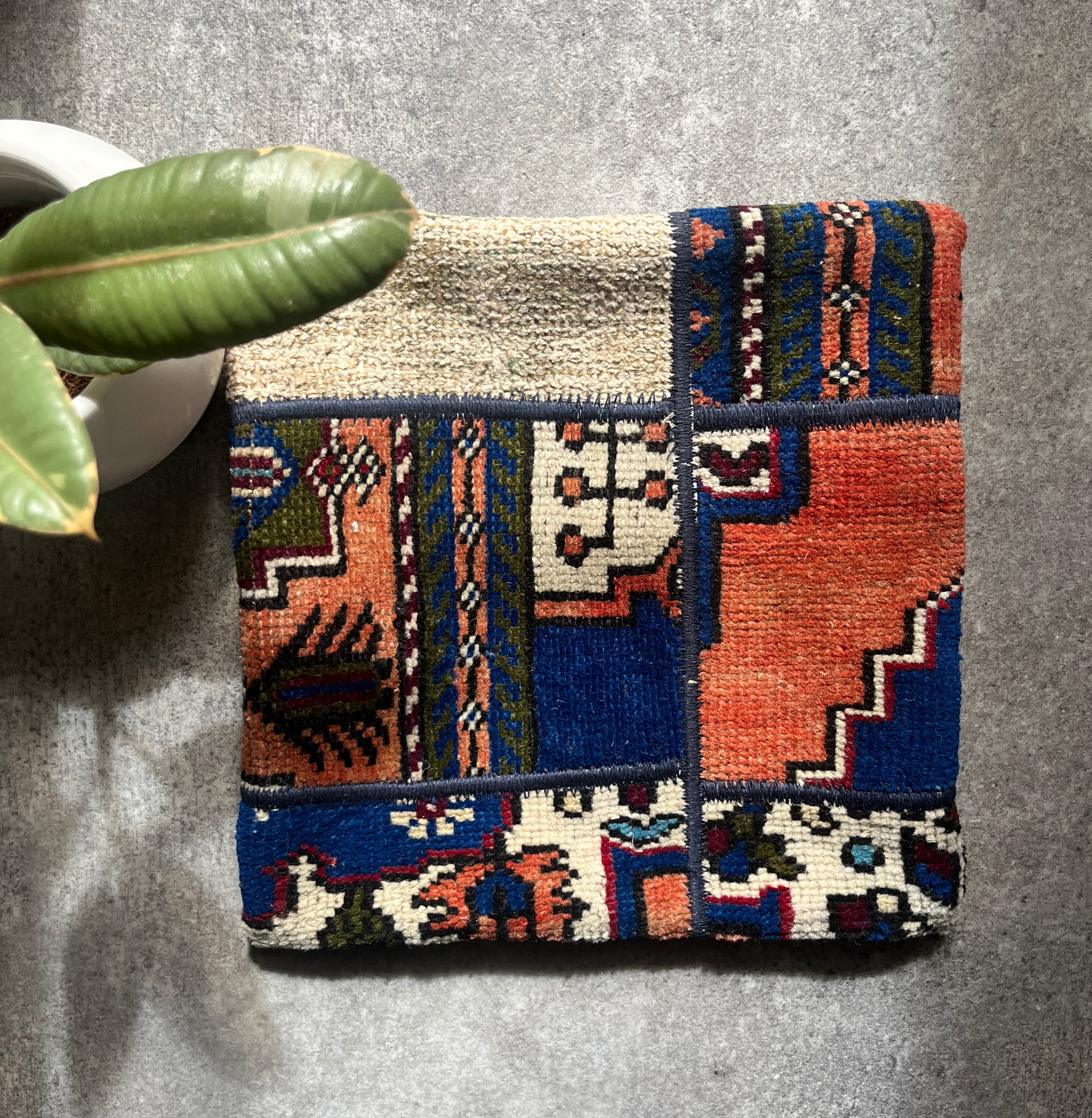 ヴィンテージラグの断面を1枚のデザインに紡ぎ合わせたクッションカバー。