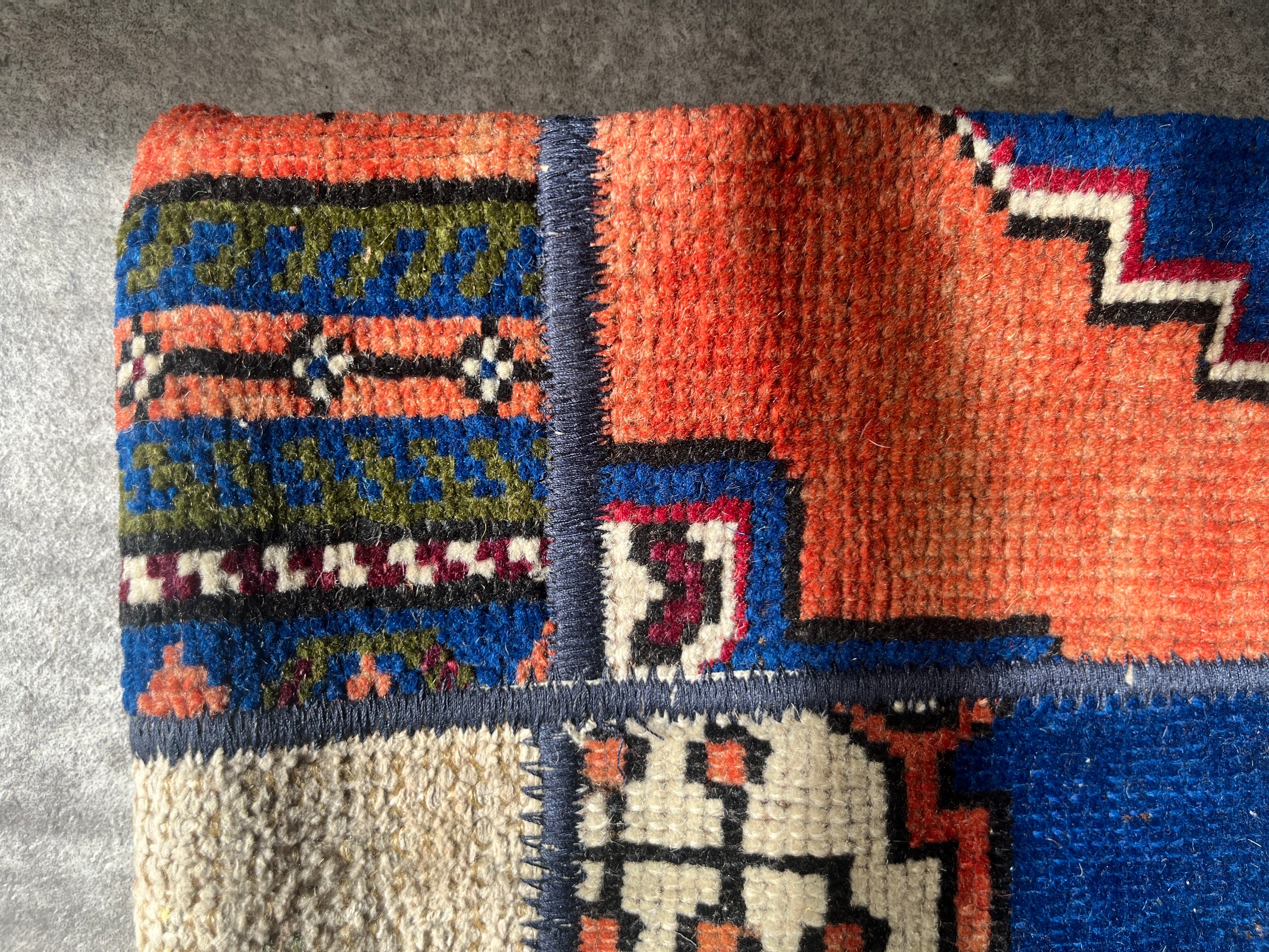 ・ヴィンテージにおいての年数経過、また手織りのため、歪みや色ムラ、多少のほつれ.植物の繊維がある場合がございます。