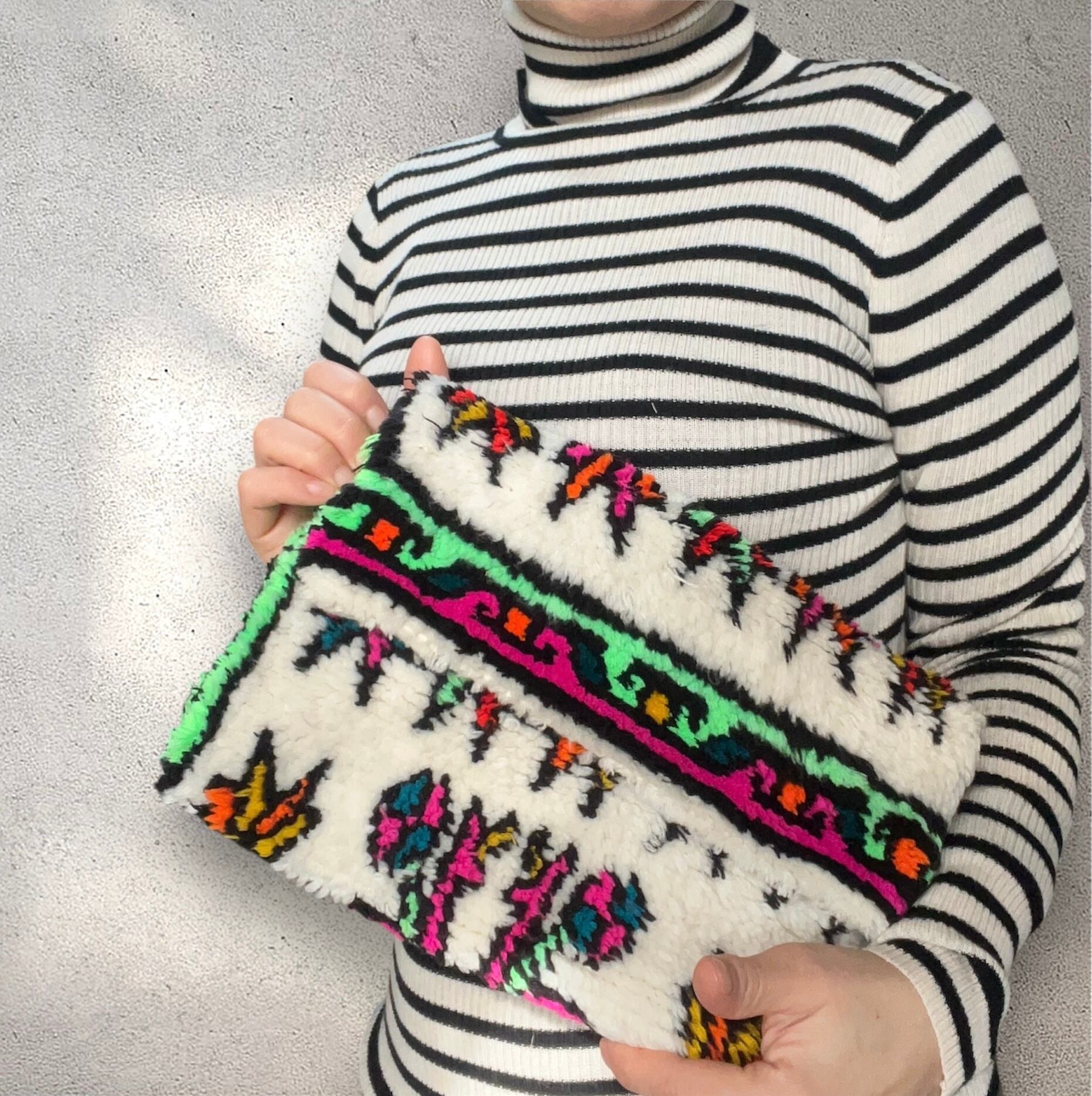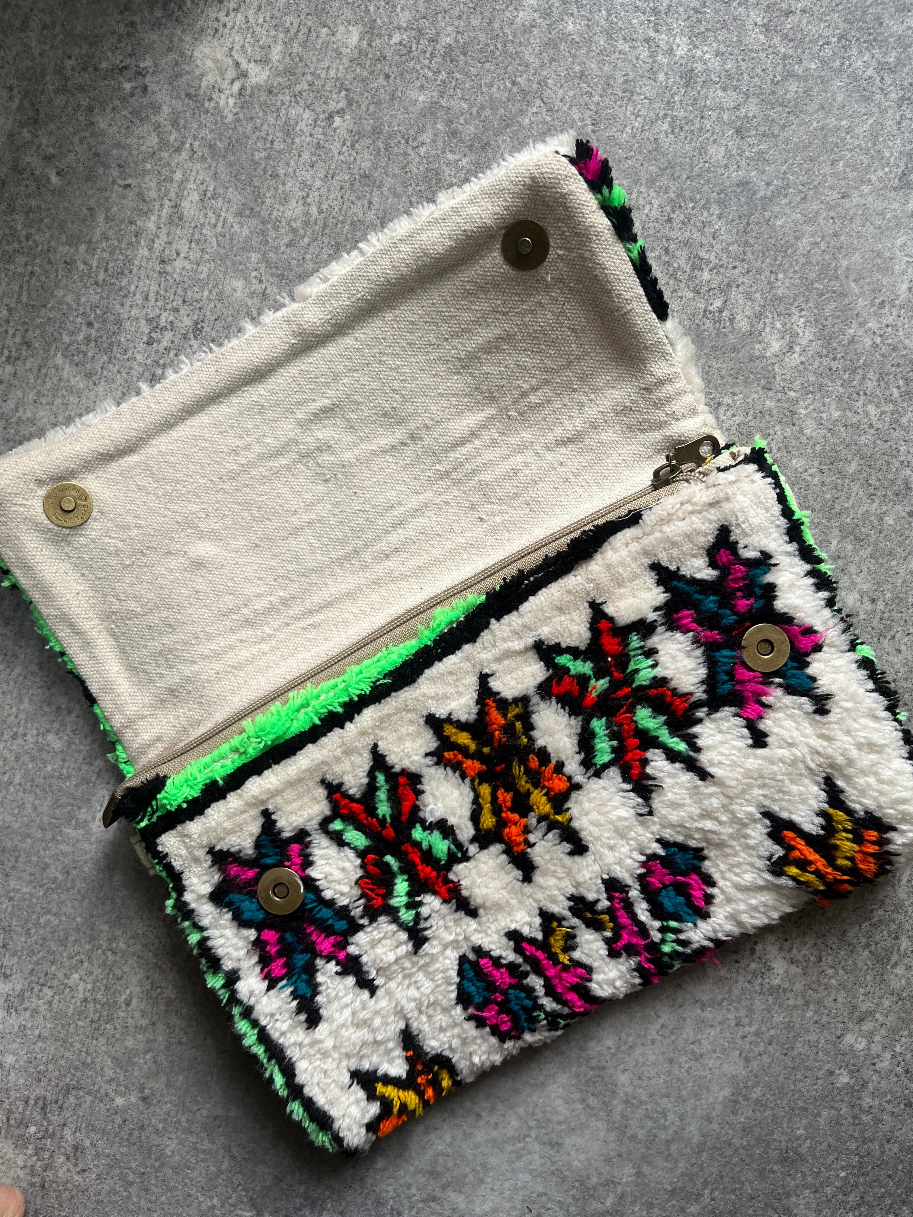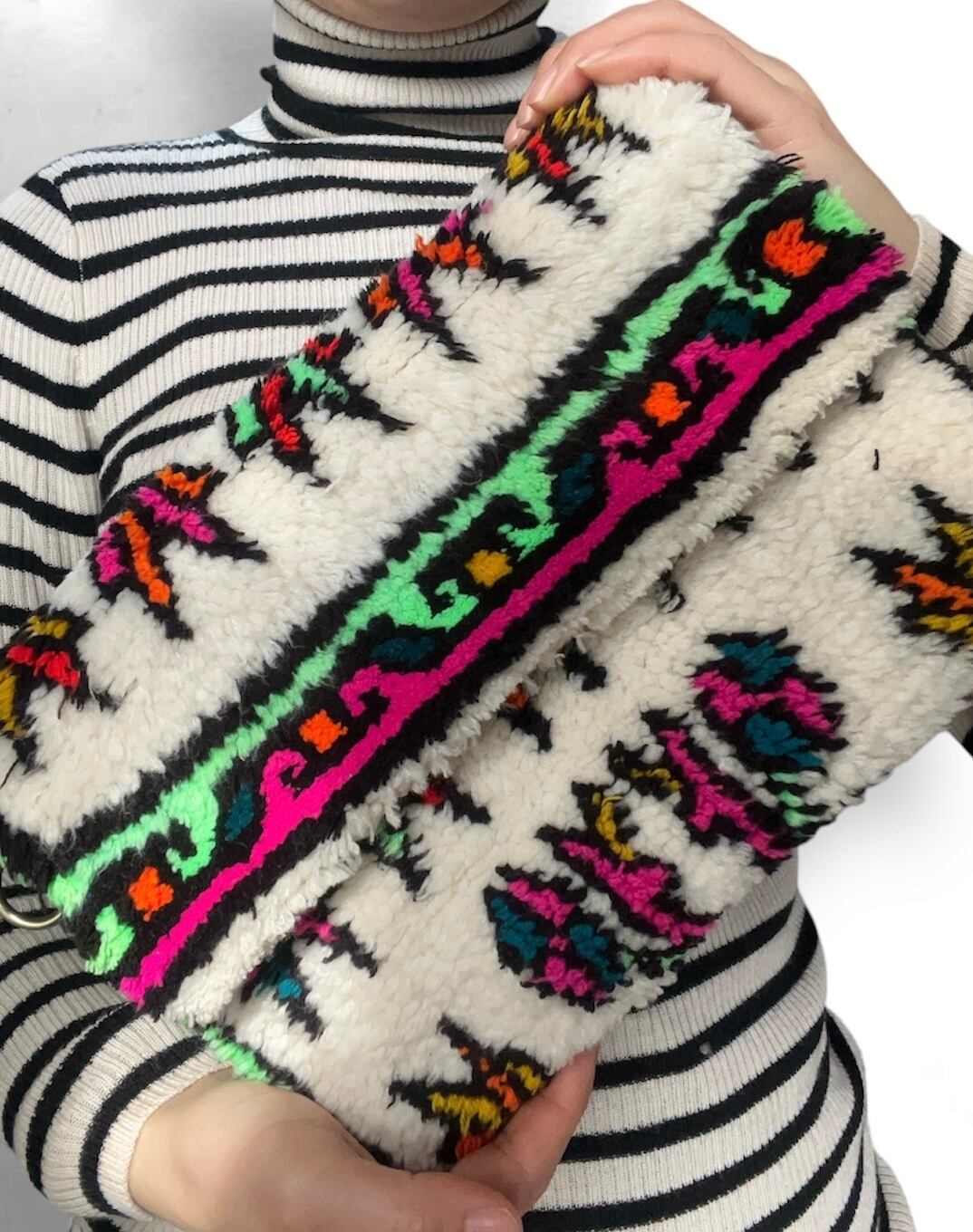ホワイト地をベースに、ネオンカラーのデザインが目を惹き、視線を釘付けにしてしまうバッグ。